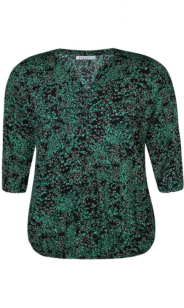 Opplev vår stilige topp med V-hals, 3/4-lange ermer, og elastisk kant nederst, komplett med et vakkert mønster! Denne toppen er den perfekte blandingen av komfort og stil, ideell for å gi deg et trendy og avslappet utseende. Med sitt delikate mønster og flatterende passform, er denne toppen et uunnværlig tilskudd til garderoben din.