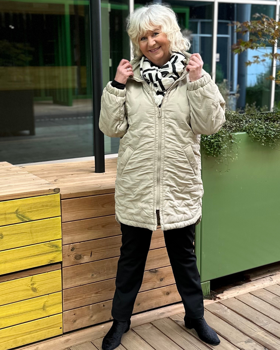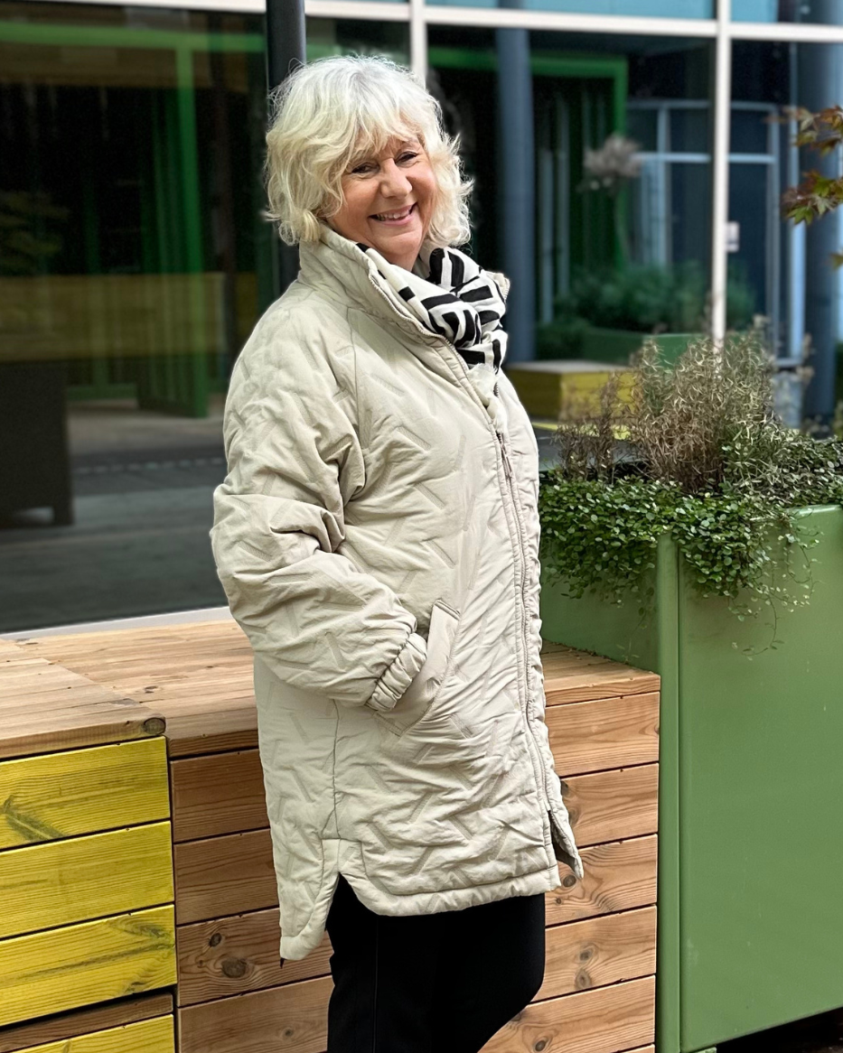 Crown er en stilfull og praktisk lang ytterjakke til dame, perfekt som overgangsjakke. Den har et trendy quiltet mønster, mykt vattert fòr og en rett passform som både varmer og ser bra ut. Den stående kragen beskytter mot vind, mens glidelåsen foran gir en sikker og komfortabel lukking.