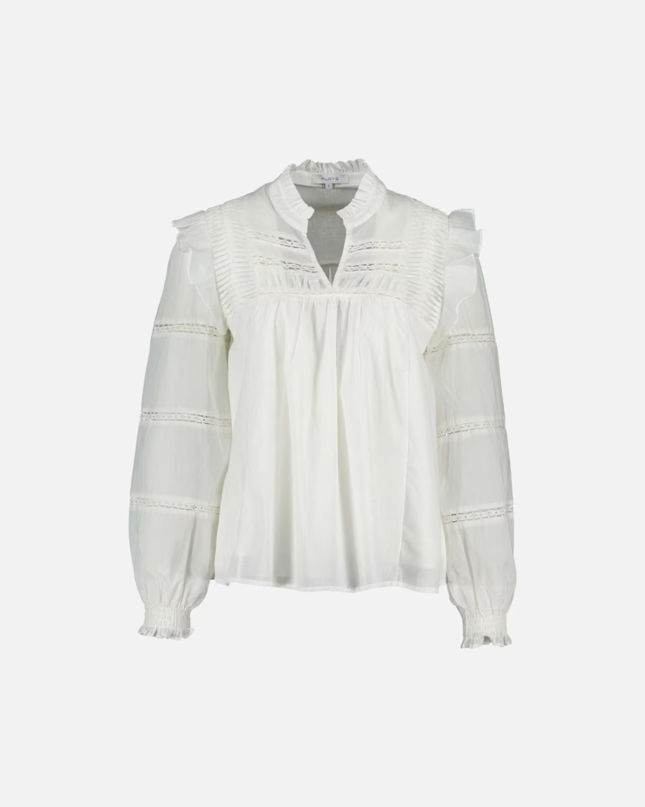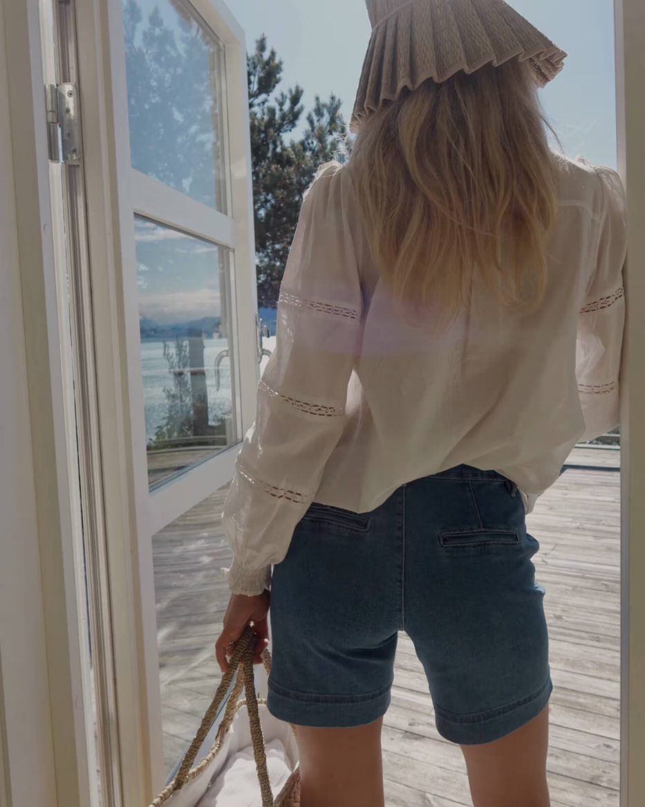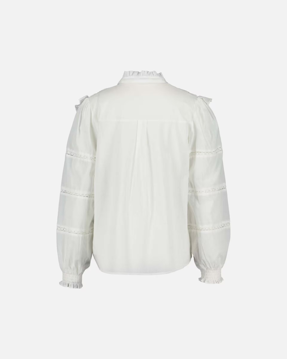 En nydelig og feminin bluse som gir antrekket det lille ekstra! Demi Uni-blusen er laget i myk bomull og har delikate detaljer som virkelig skiller seg ut. V-halsen er pyntet med en søt rysjekant, og legg-detaljene ved skuldrene gir en elegant silhuett.
