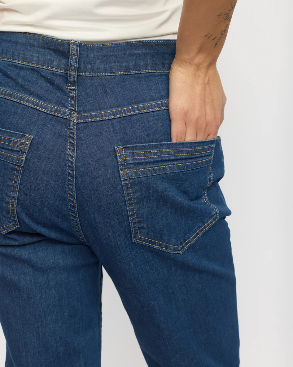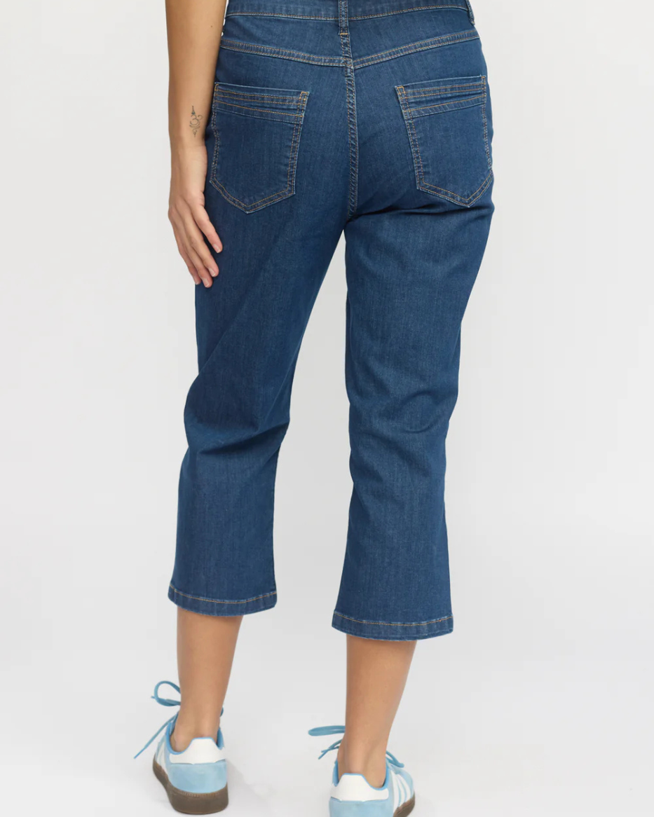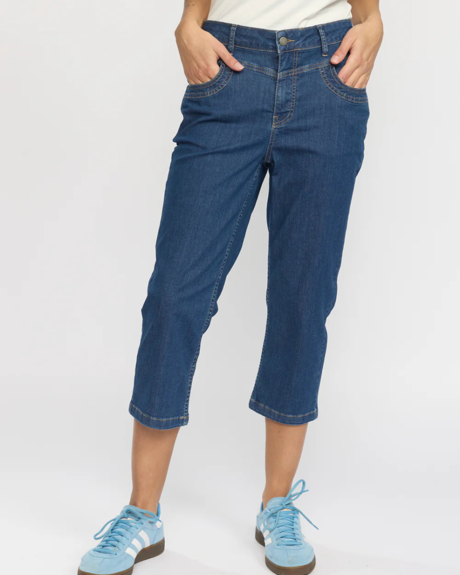 Amira er en capribukse i myk denim med god stretch, som gir både komfort og en flatterende passform. Den har en klassisk 5-lommers modell med rett fasong, som skaper et tidløst og stilrent uttrykk.