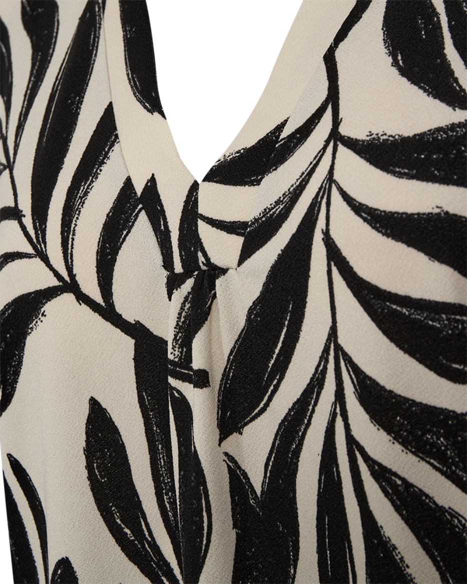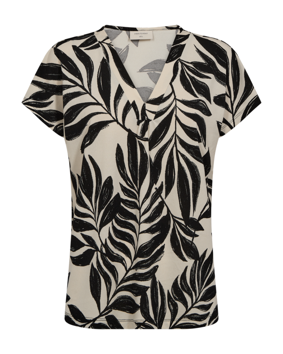 Det sommerlige trykket, samt de korte ermene og v-halsen, gjør denne toppen til et nøkkelplagg i garderoben.