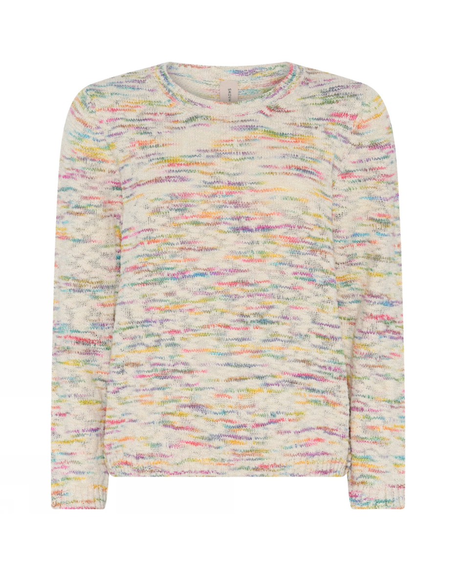 En myk og behagelig genser i boucle med multifarget garn som gir liv og energi til antrekket ditt. Rund hals og lange ermer gjør den enkel å style og komfortabel hele dagen. Perfekt til jeans, skjørt eller under jakke for en trendy, avslappet look.