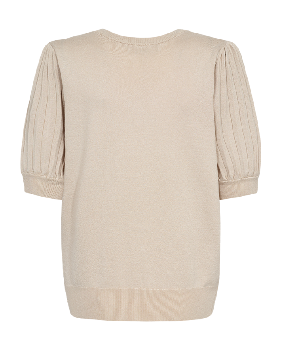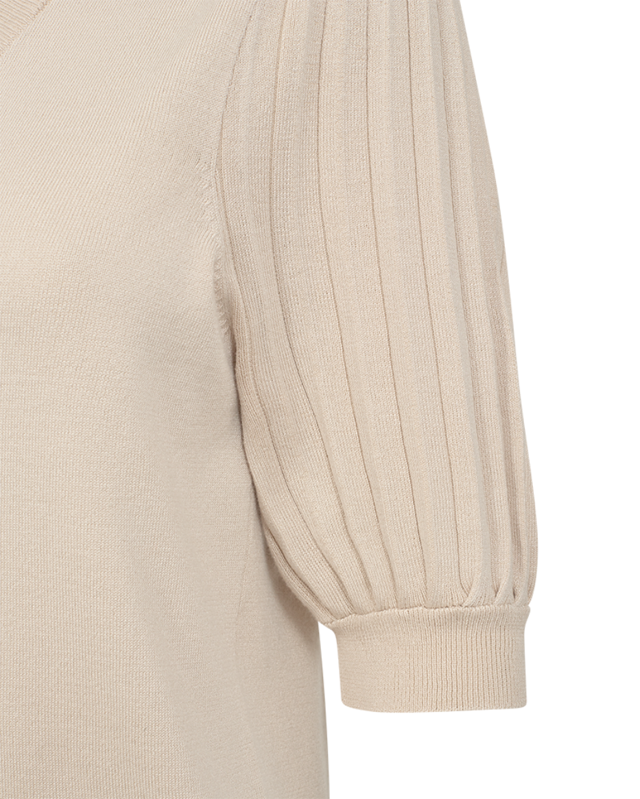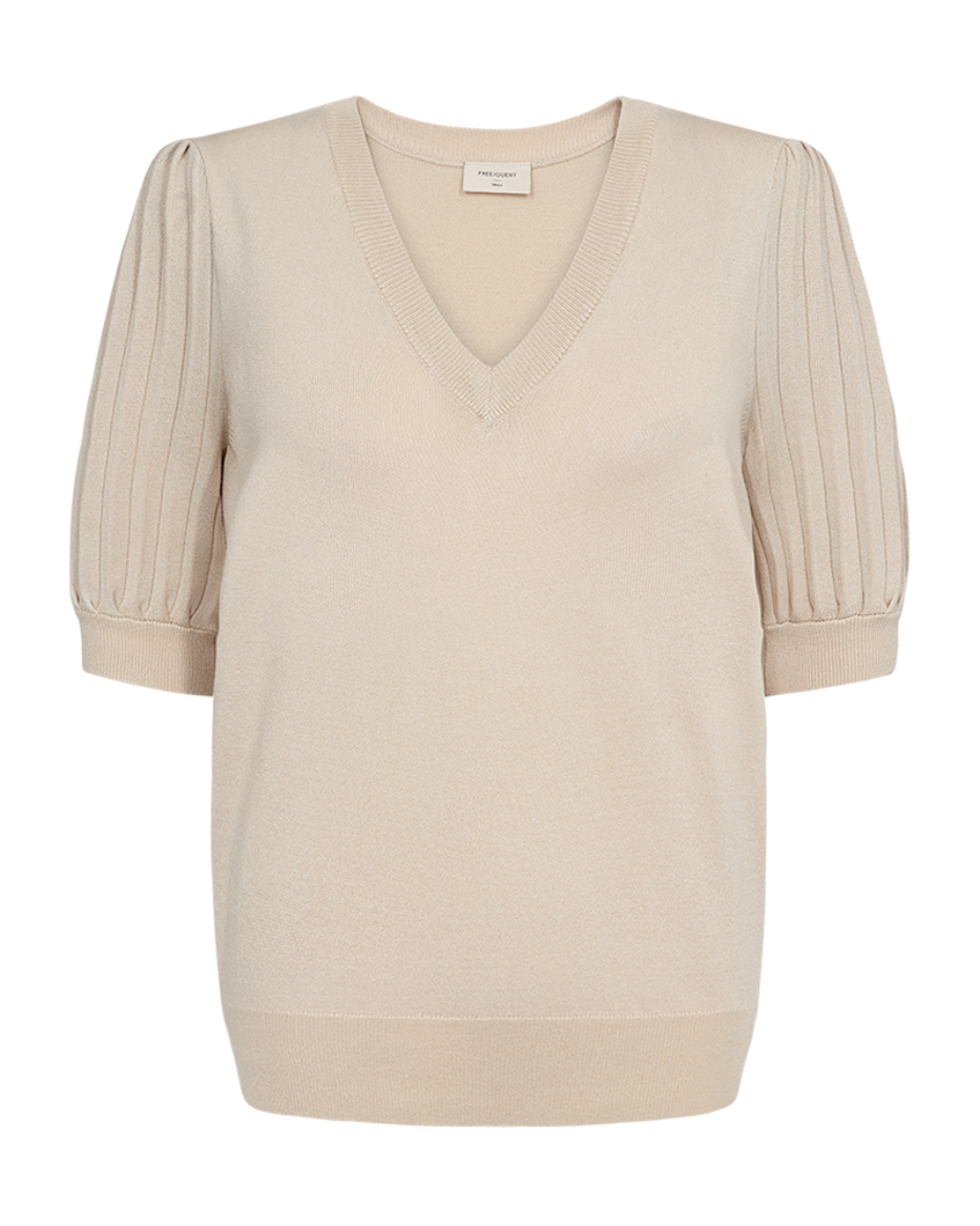 Denne myke genseren i viskoseblanding henger lett over kroppen, og med dens korte plissé-ermer med lett puff og v-hals, er den lett å style opp med skjørt eller dressbukse, eventuelt røffe den opp med noen jeans!