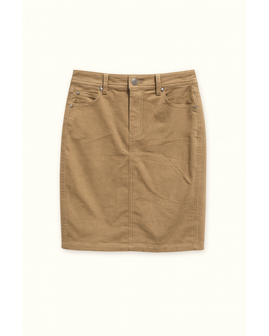 Ena er et stilfullt kort skjørt i fløyel med en klassisk 5-lommers design som gir et tidløst og moderne uttrykk. Skjørtet har en smal modell som fremhever silhuetten på en flatterende måte, samtidig som fløyelskvaliteten tilfører en myk og elegant tekstur.