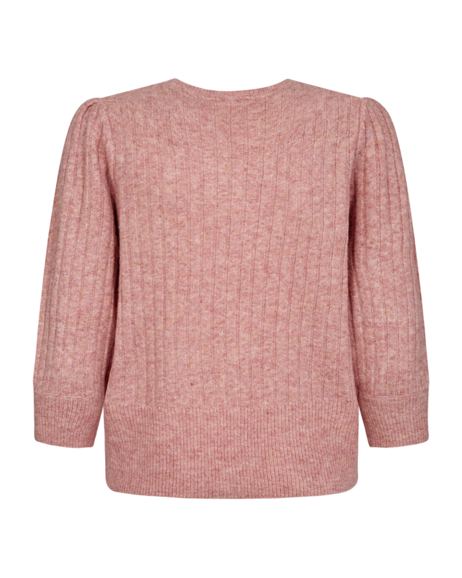 Hara er en myk og behagelig genser i ribbestrikket kvalitet som gir en flatterende og fleksibel passform. Den har rund hals og lange ermer med en diskré puff på skuldrene, som gir et feminint og moderne uttrykk.