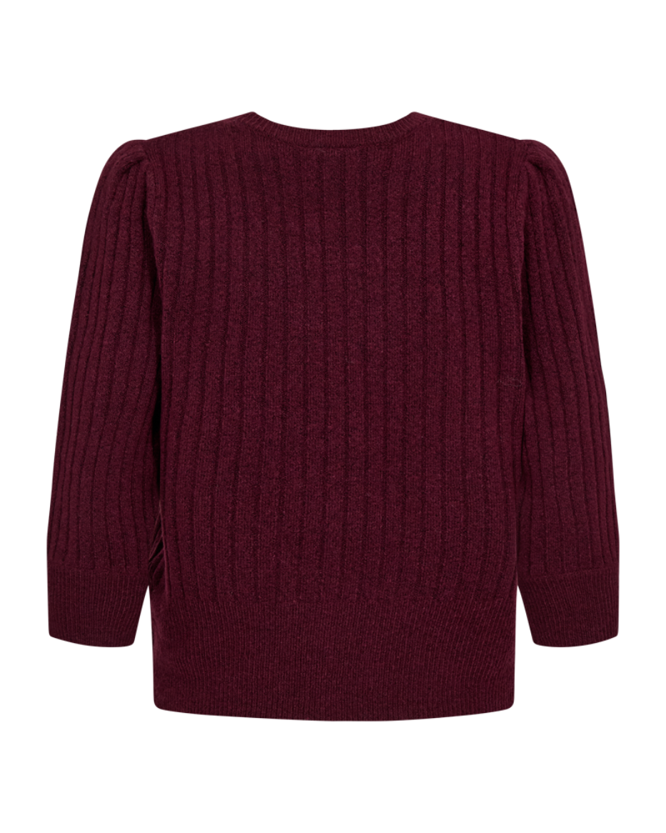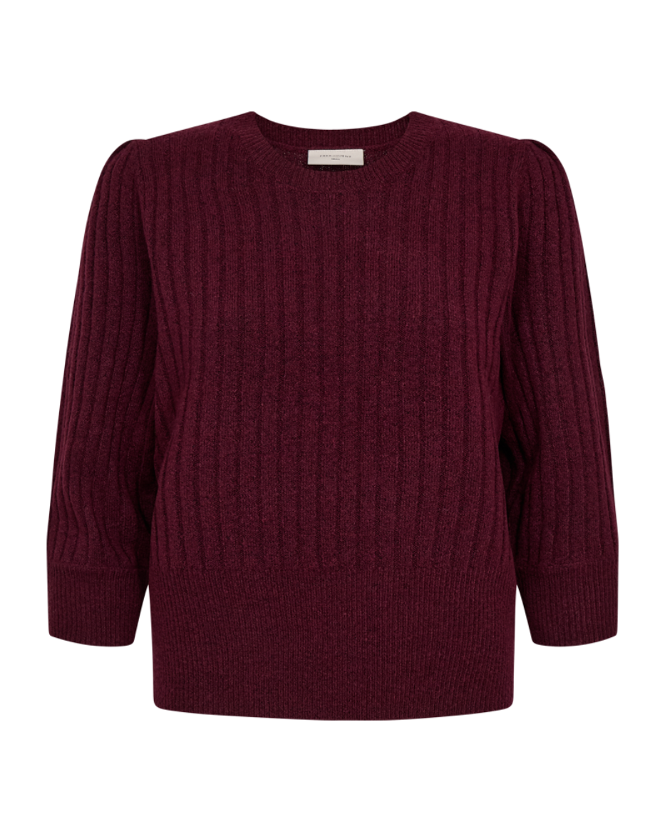 Hara er en myk og behagelig genser i ribbestrikket kvalitet som gir en flatterende og fleksibel passform. Den har rund hals og lange ermer med en diskré puff på skuldrene, som gir et feminint og moderne uttrykk.