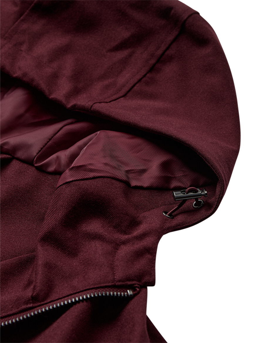 Designet i en rett modell med knytebelte, med fast hette, får jakken et moderne uttrykk og god bevegelighet.