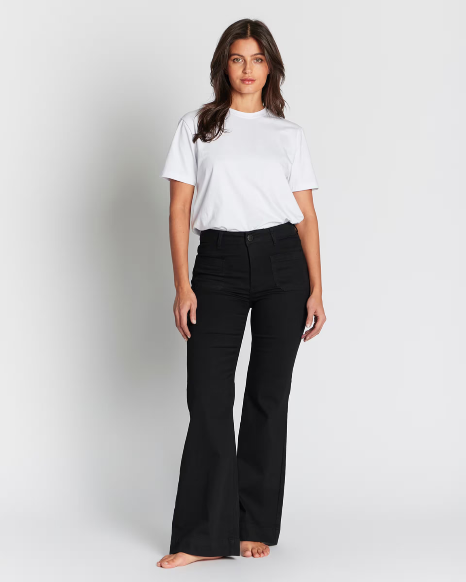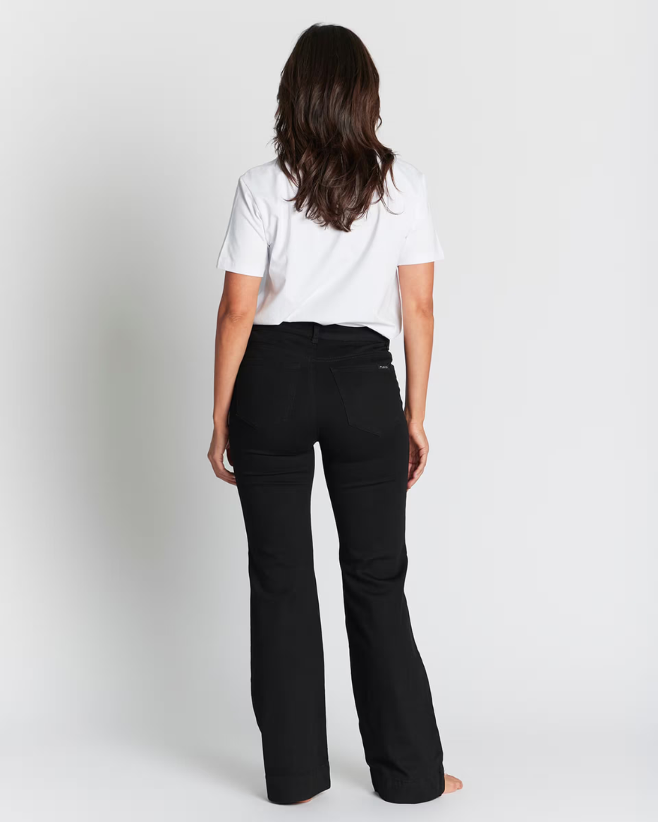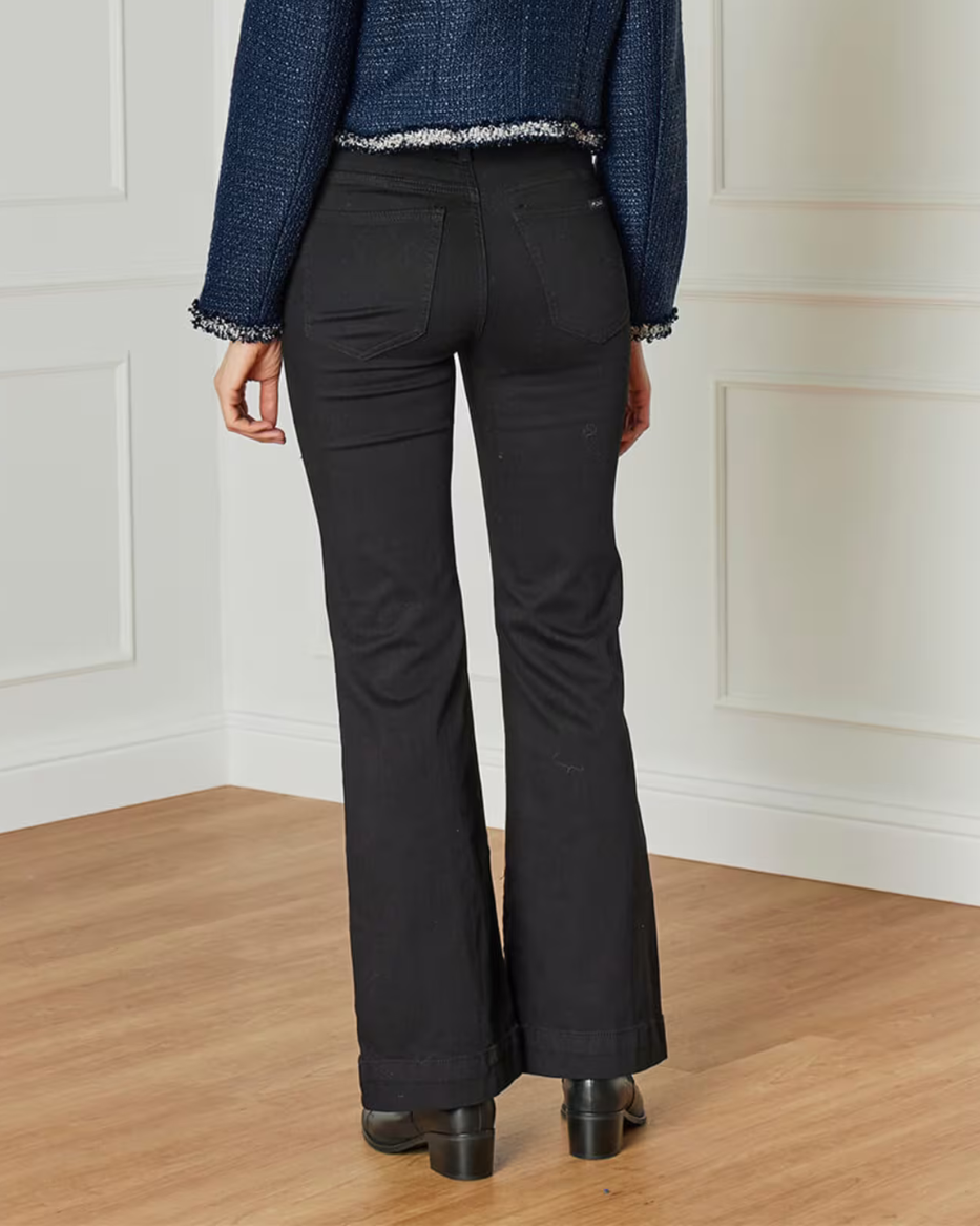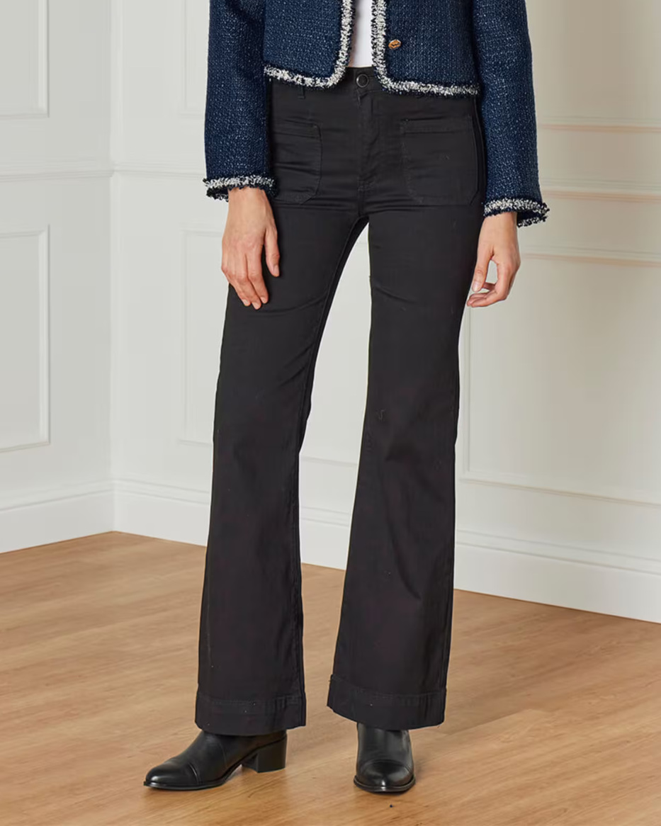 Annika-jeansen er laget i en myk denimkvalitet med veldig god stretch, som gir både komfort og bevegelsesfrihet. Den har høyt liv og utvendige lommer foran for et moderne, trendy uttrykk. Baklommene er plassert midt på rumpa for en flatterende passform, og sleng med dekorativ søm nederst på beina gir et stilig finish.