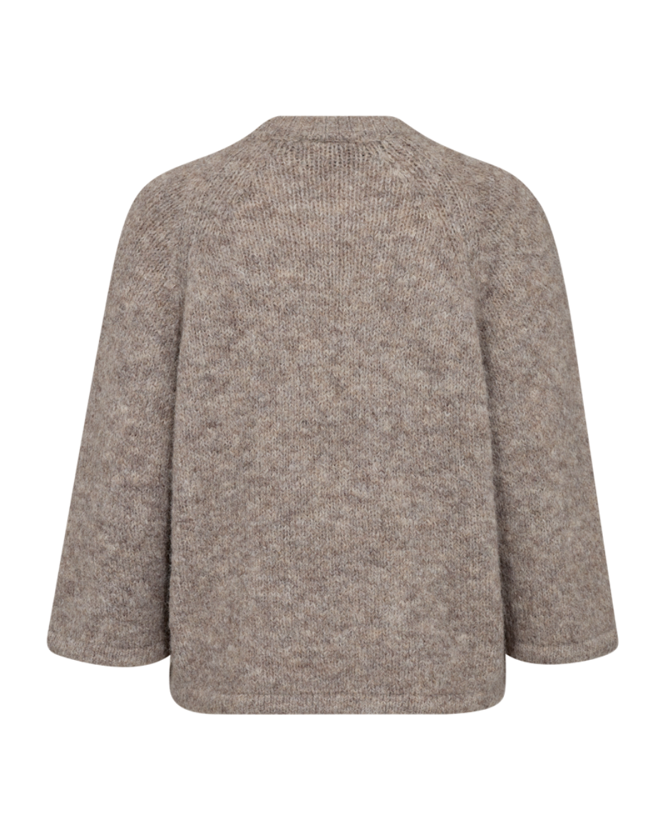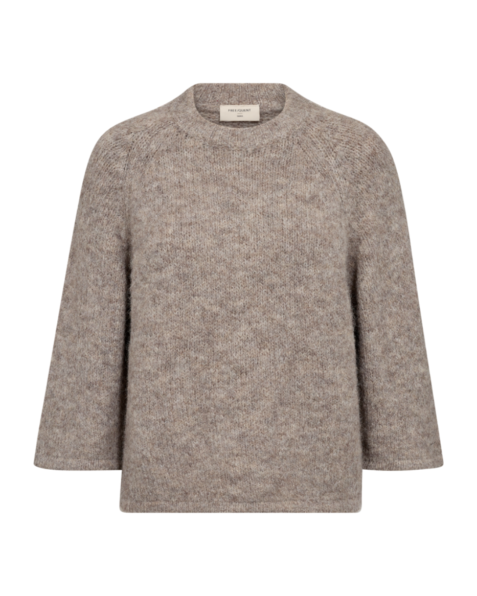 Den har rund hals og 3/4 lange ermer med en liten utskrådd avslutning, som tilfører en moderne og elegant touch. Den rette passformen gjør den behagelig å bruke og enkel å style – perfekt både til jeans, skjørt eller over en kjole for et avslappet, men stilig antrekk.