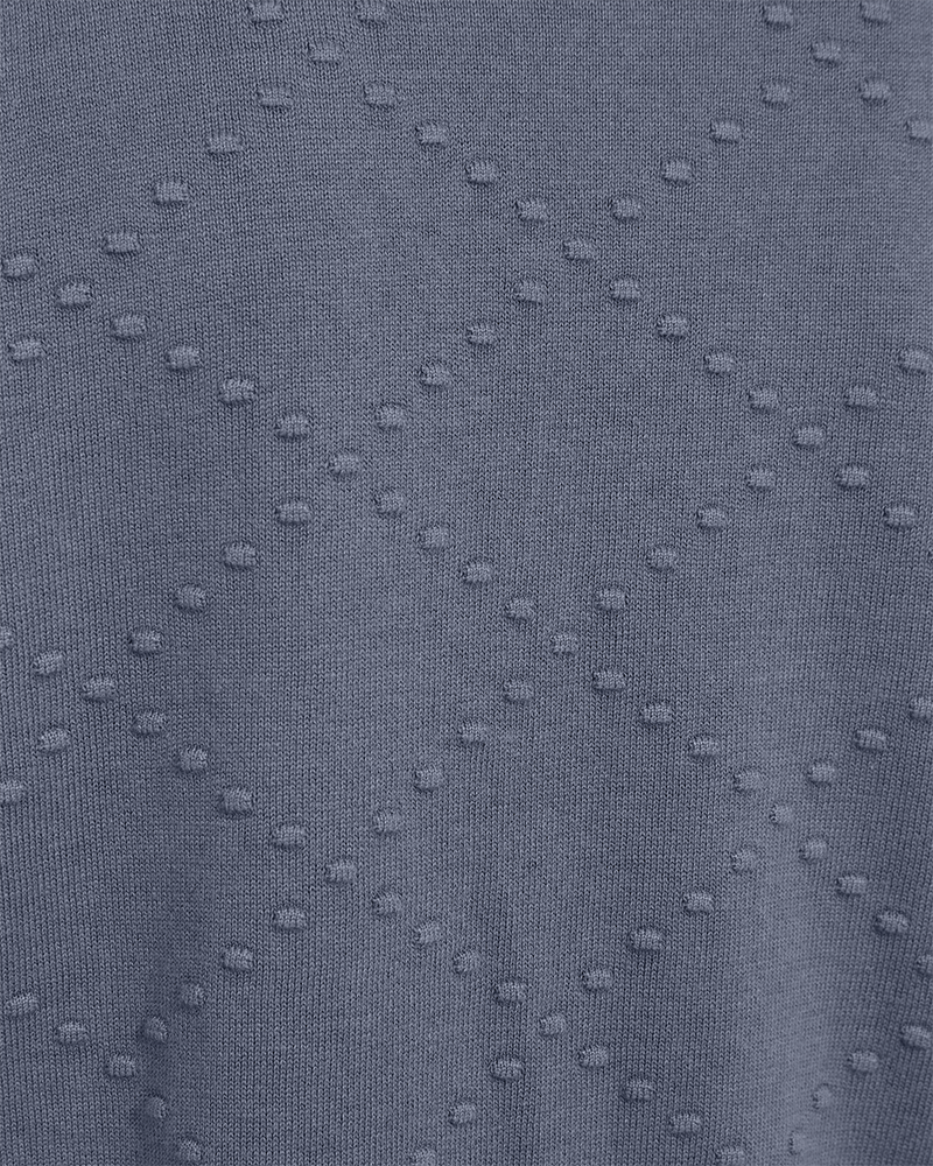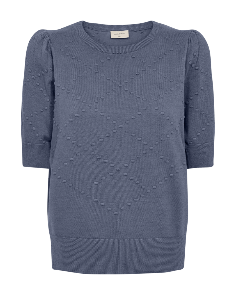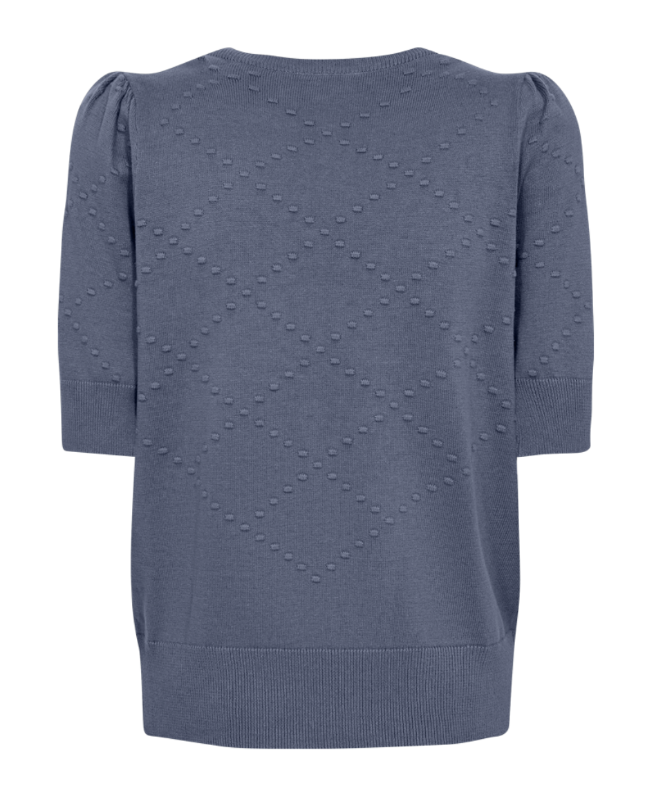 Dodo strikkegenser er en lett og feminin genser i 100% myk bomull. Den har korte ermer med en liten puff som gir et delikat uttrykk, samt et diskret mønster i strikken som gjør den ekstra elegant. Perfekt til både hverdags og jobb – enkel å style med både bukse og skjørt.