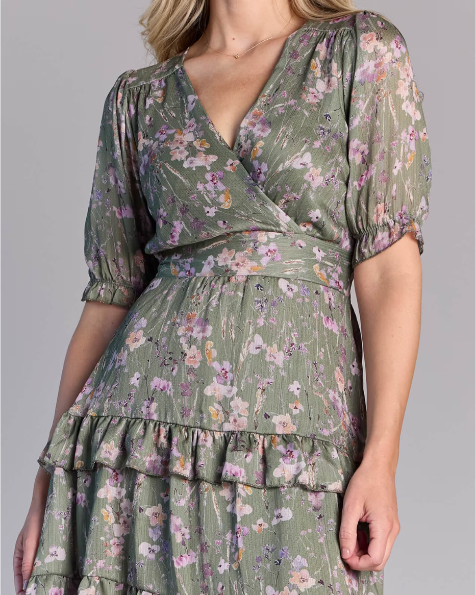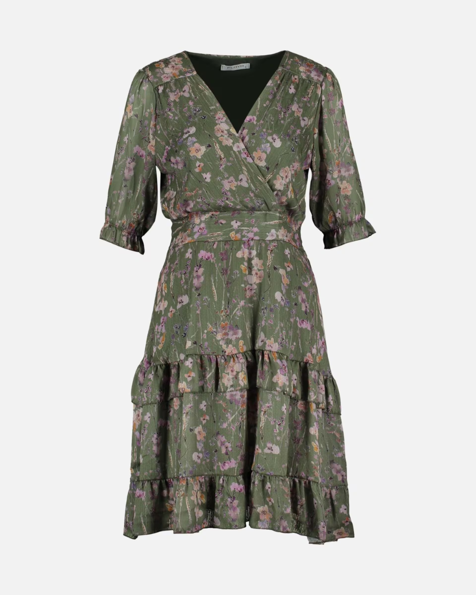 Amora Straw short er en elegant og romantisk kjole i lett chiffon med blomsterprint og delikat struktur! Omslags-V i front, markert midje og volangskjørt gir en feminin og flatterende passform.