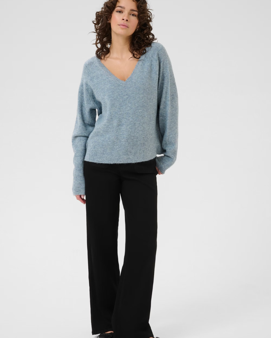 Niel strikkegenser er en klassisk genser med tidløs passform og feminin V-hals. Modellen har lange ermer, ribbestrikkede mansjetter og en myk kvalitet som gjør den både behagelig og anvendelig.