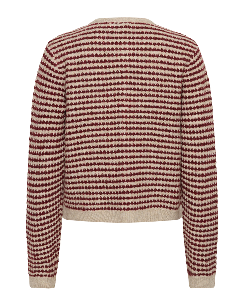 Ellery strikkejakke kombinerer tidløs stil med moderne detaljer. Denne cardiganen har en klassisk rund hals og lange ermer, og er laget i et mykt og behagelig materiale. Det tofargede mønsteret gir et friskt og trendy uttrykk, perfekt for både hverdagsbruk og spesielle anledninger.