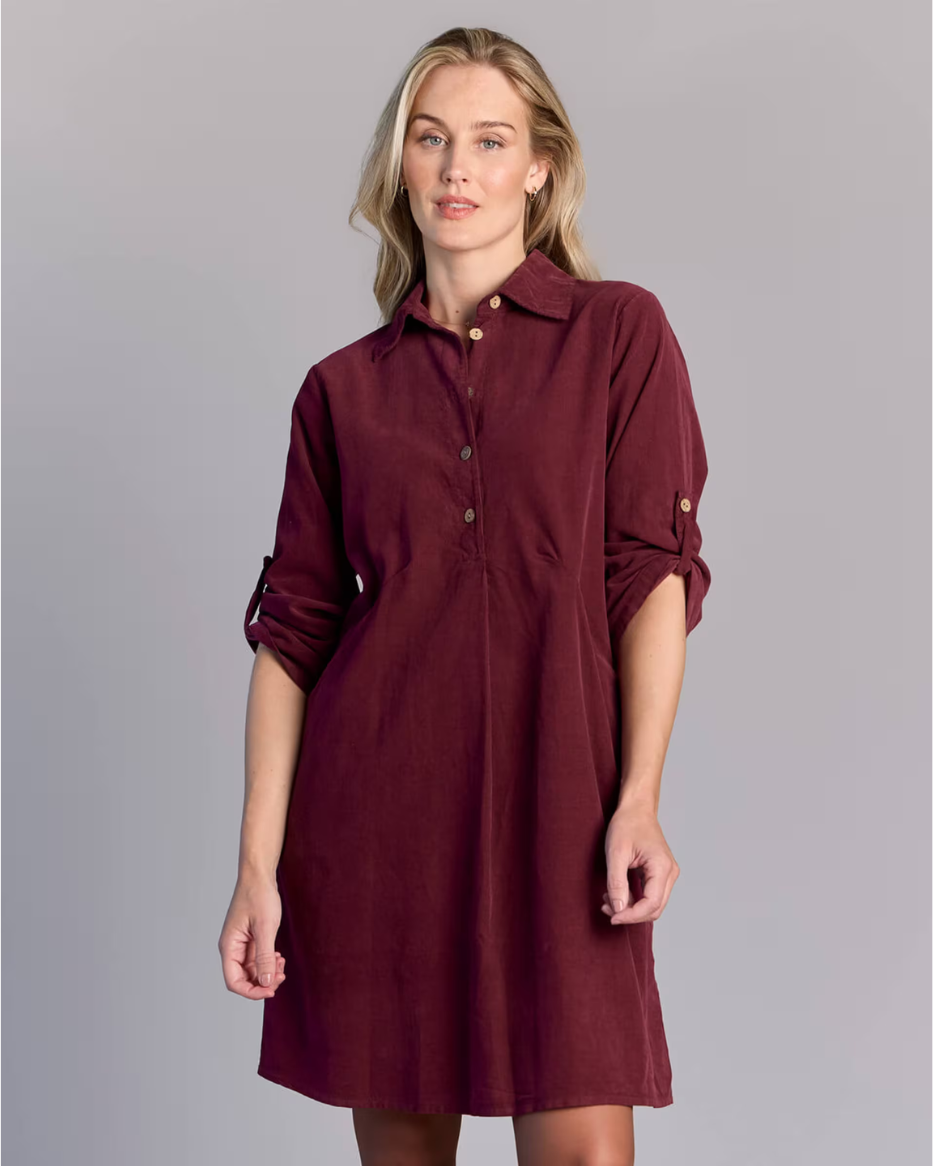 Randi Cord kjole er en klassisk skjortekjole i myk kordfløyel med ledig og avslappet passform, perfekt som hverdagsfavoritt som kan brukes år etter år. Den har en nedbrettet skjortekrage og knapper nedover overdelen, som gir et tidløst og stilrent uttrykk.