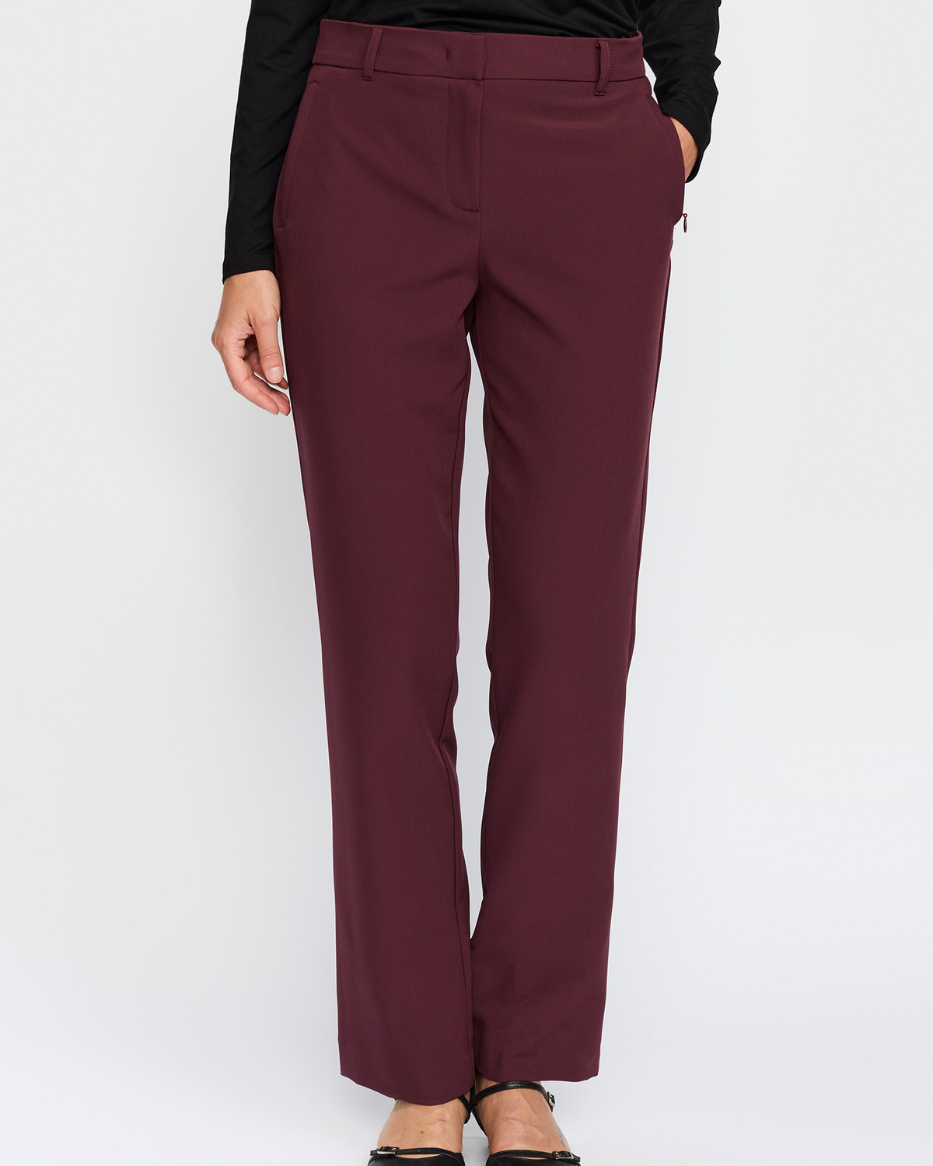 Med knapp og glidelås i front og skrå lommer i sidene, får du et klassisk uttrykk med praktiske detaljer. Laget av høykvalitetsstoff som gir en elegant silhuett – perfekt til både jobb, hverdag og fest.