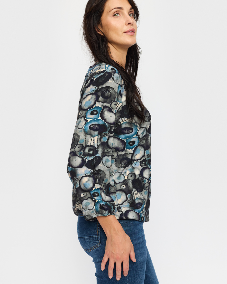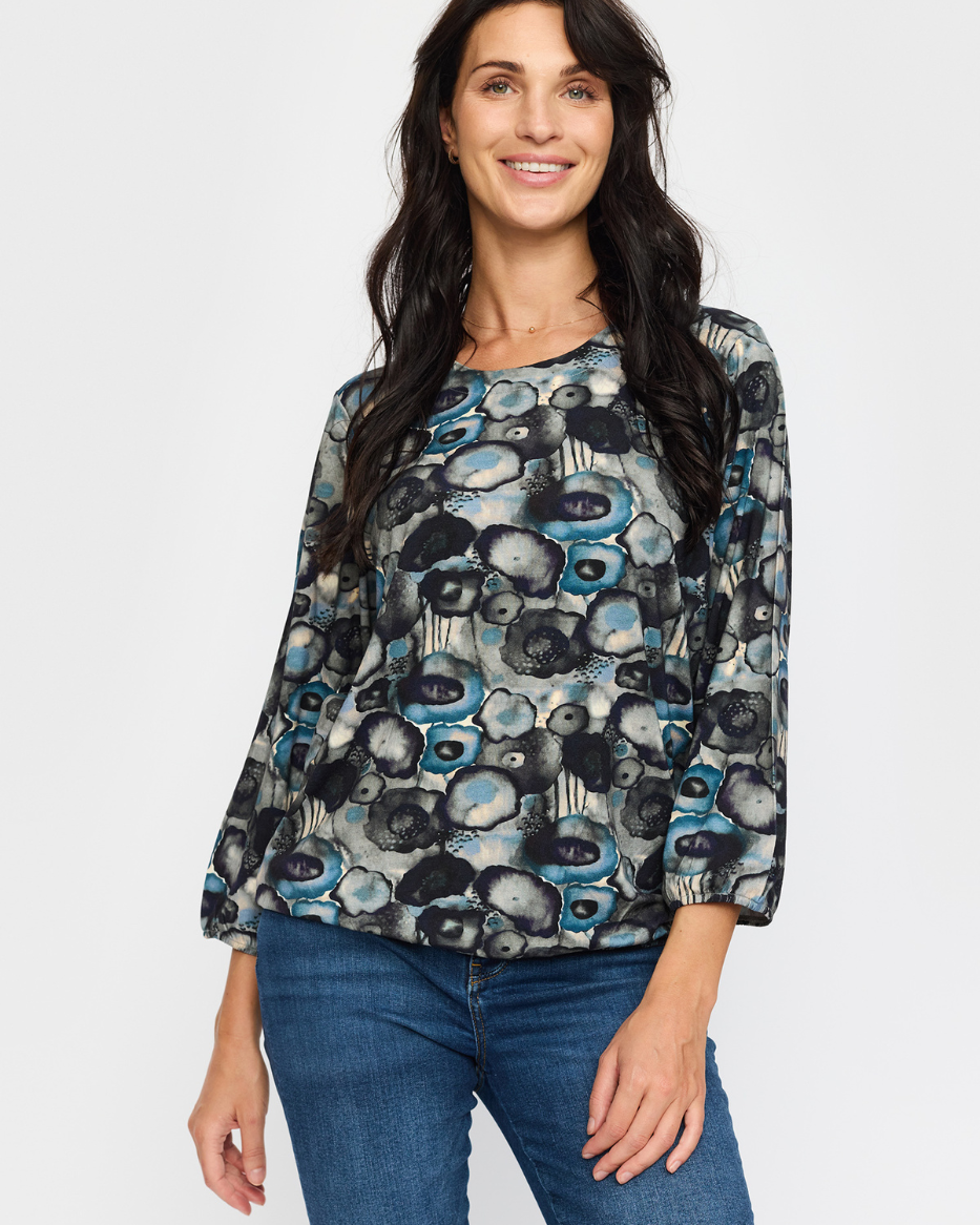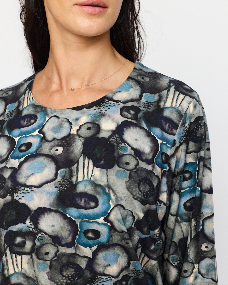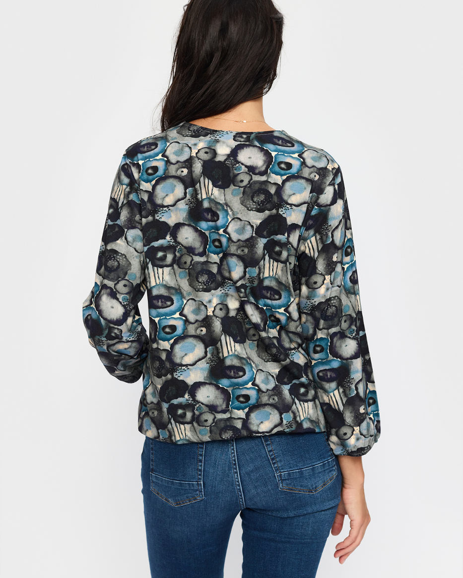 Oppdag Tandy, en komfortabel og stilig topp i mykt, elastisk materiale med et moderne mønster. Den runde halsen gir et klassisk og tidløst uttrykk, mens lange ermer med strikk i kantene gjør det enkelt å justere både lengde og passform.