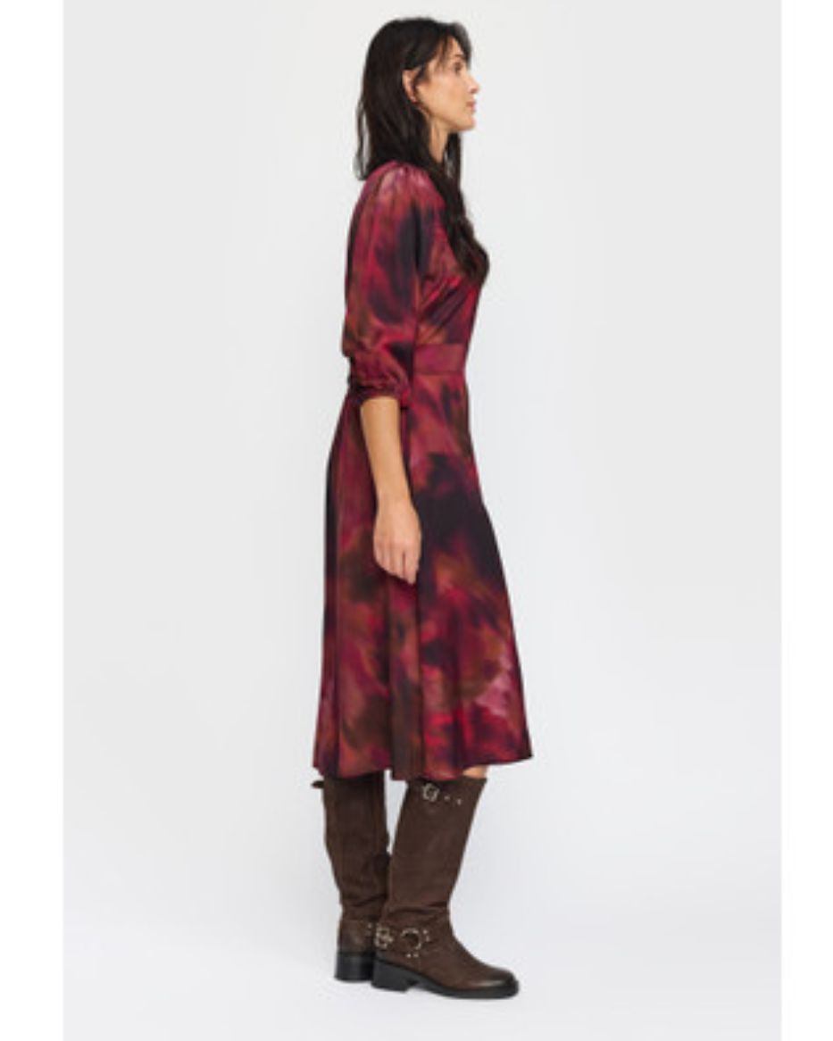 Annika er en nydelig midi lang kjole i silkelook som gir deg en luksuriøs følelse – perfekt til både fest og hverdag. Kjolen har lange ermer med strikk i kanten, liten v-hals og et markert midjestykke foran som gir en flatterende passform. Strikken i ryggen gjør at den sitter behagelig på kroppen, mens skjørtet har A-fasong som faller lekkert og feminint.