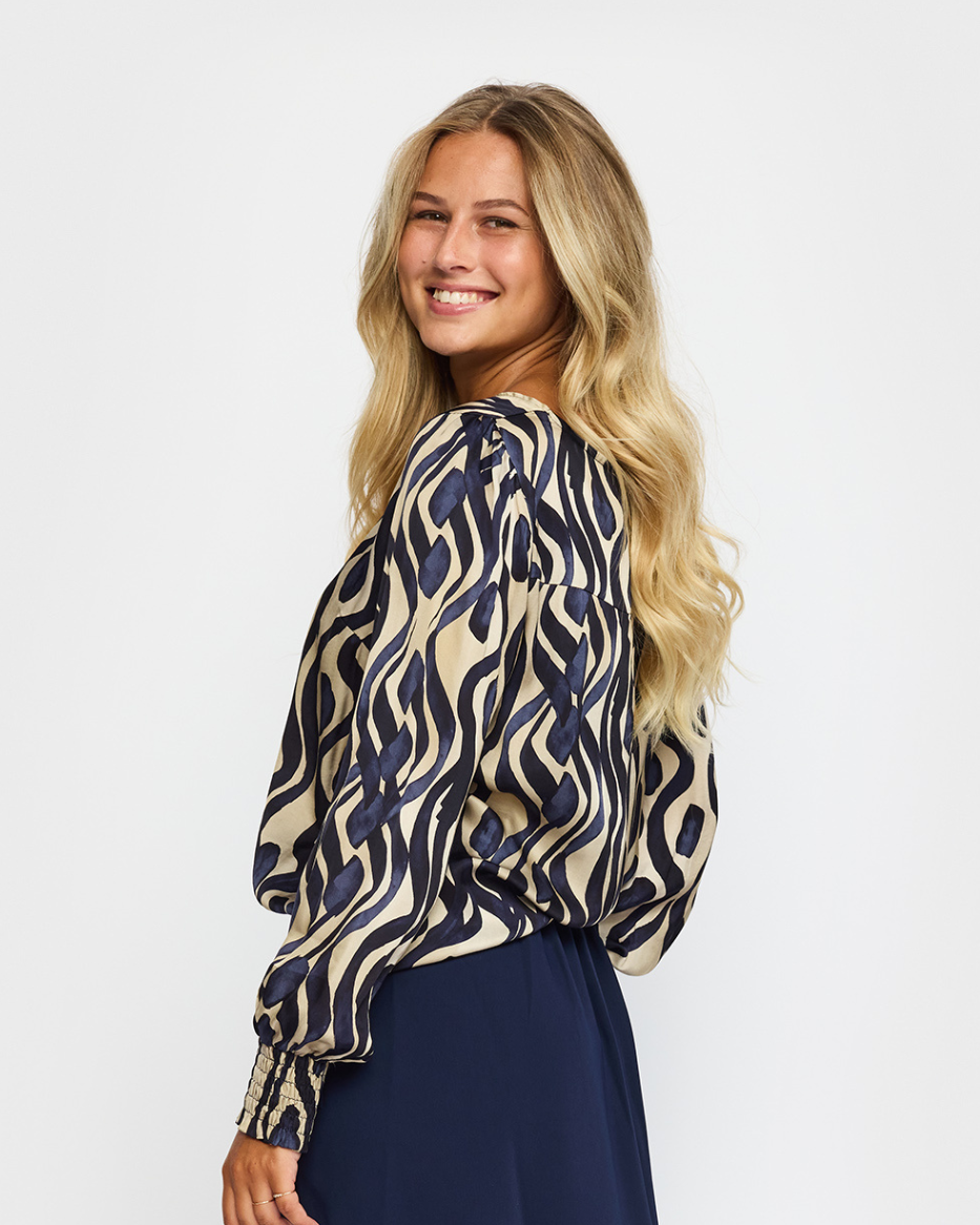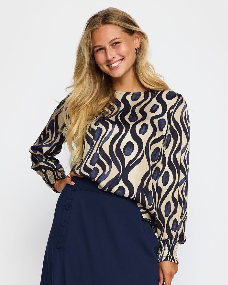 De luftige ermene med strikk på håndleddene gir et moderne og delikat preg, mens det lette silkematerialet føles mykt og behagelig mot huden. Enkel å style med både jeans, bukser eller skjørt – perfekt for deg som vil ha en anvendelig og elegant bluse i garderoben.