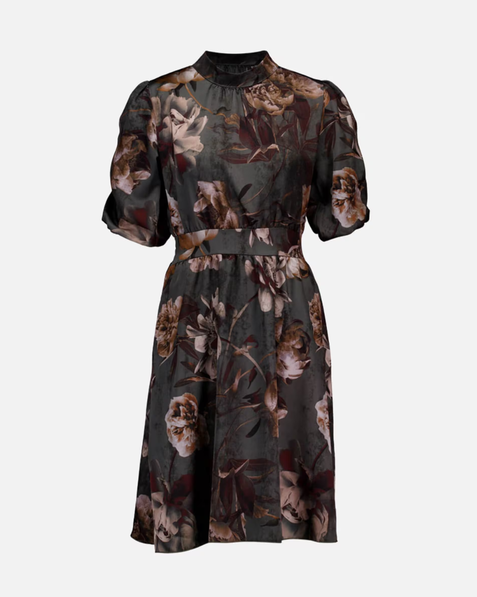 Emmeli Pana kjole – elegant satengkjole med blomsterprint
