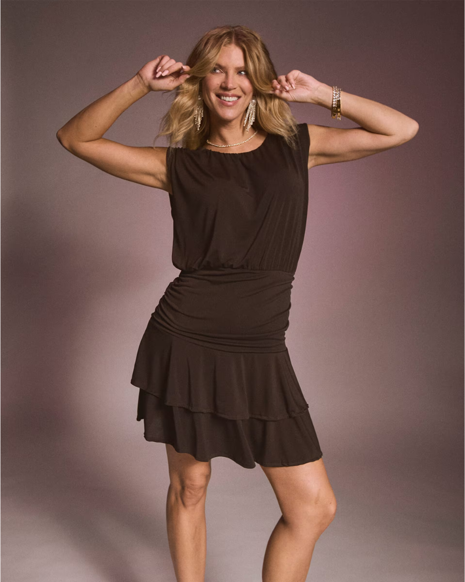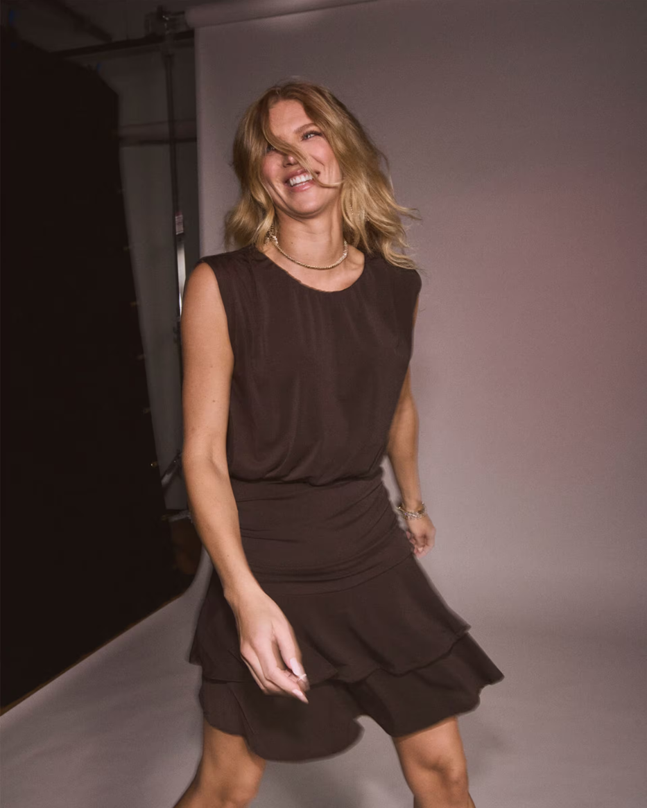 Kort kjole med draperinger og dobbelt skjørt – feminin og komfortabel