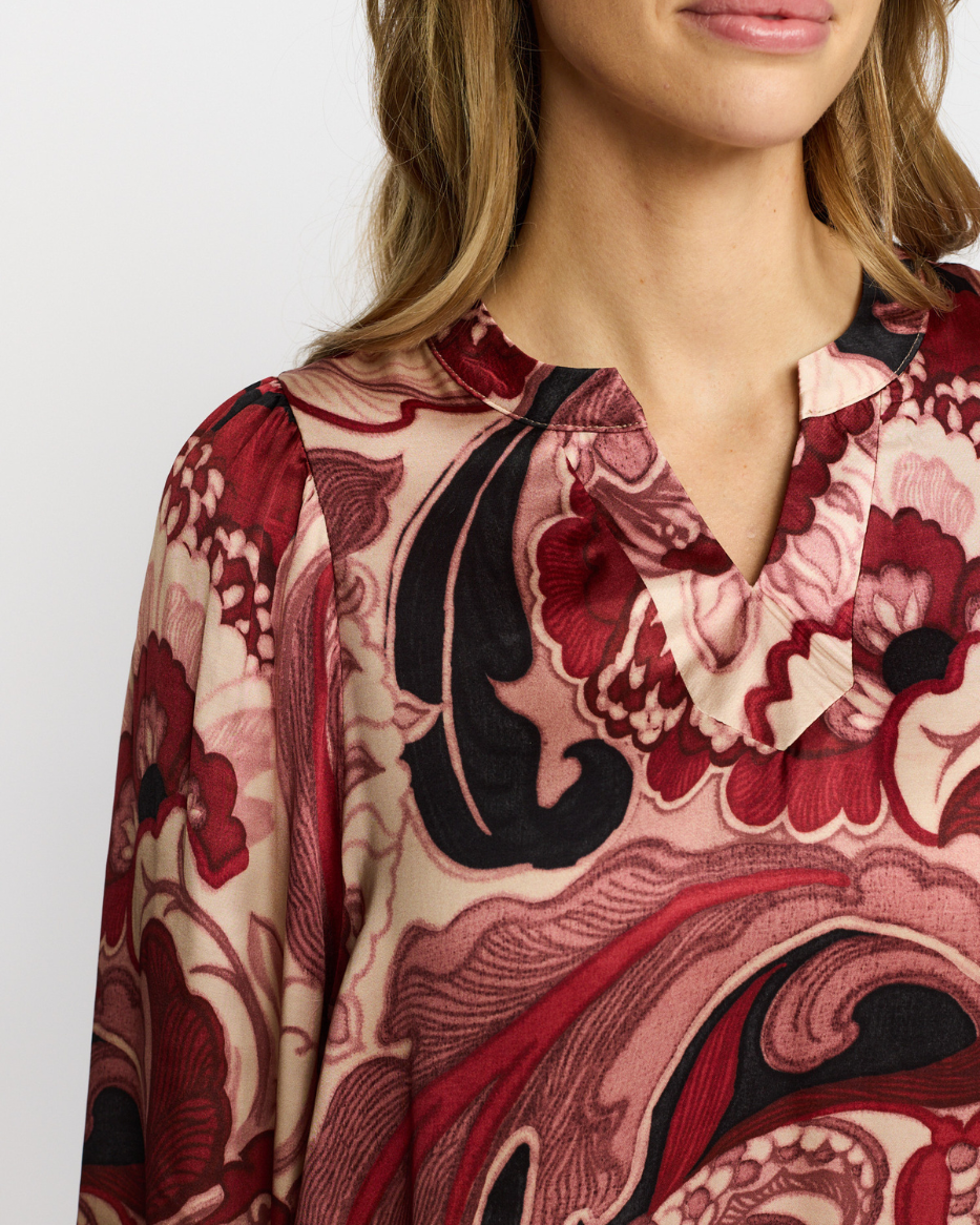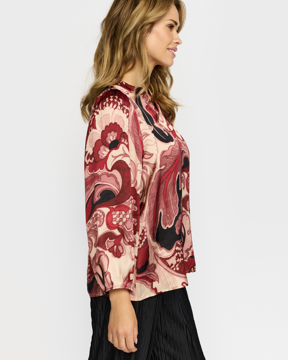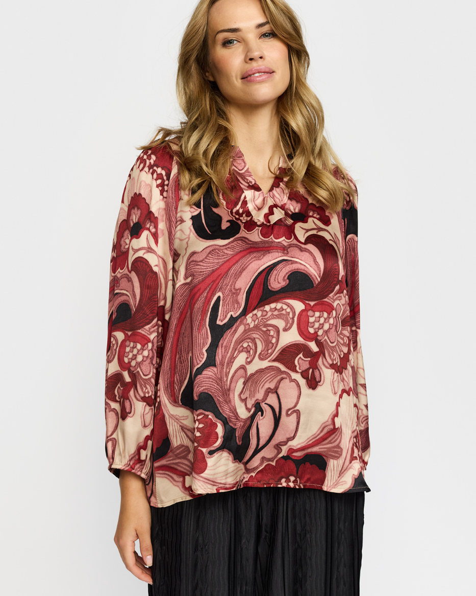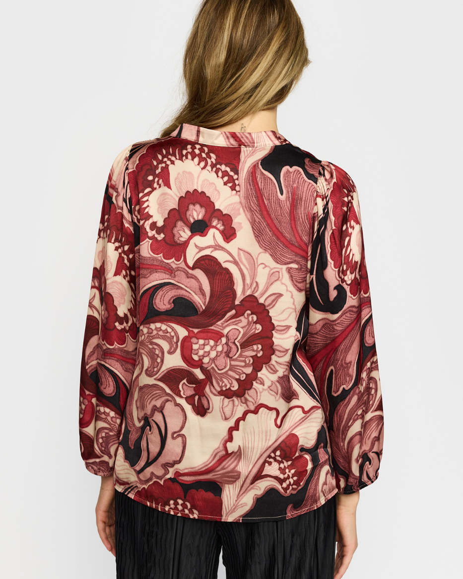 De luftige ermene med strikk på håndleddene gir et moderne og delikat preg, mens det lette silkematerialet føles mykt og behagelig mot huden. Enkel å style med både jeans, bukser eller skjørt – perfekt for deg som vil ha en anvendelig og elegant bluse i garderoben.
