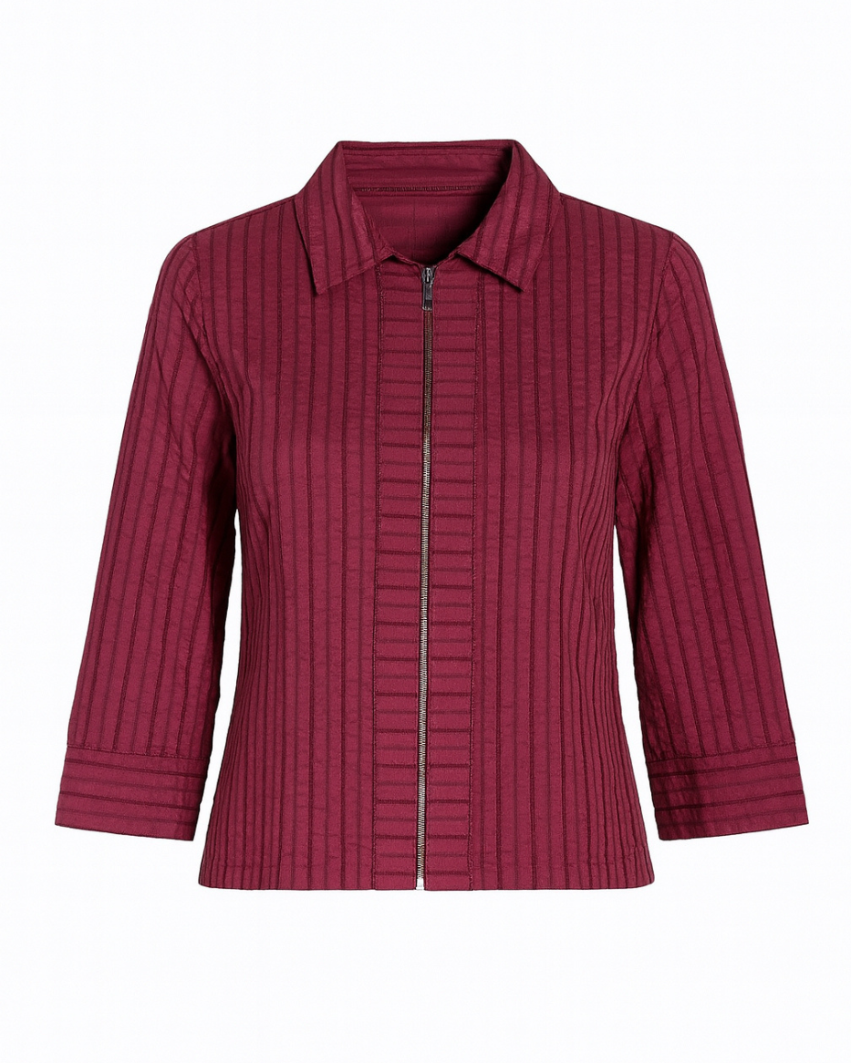 Kings-blusen er perfekt når du vil ha et moderne uttrykk med maks komfort. Stoffet har en lekker stripeeffekt som gir liv til looken, og den myke stretchen gjør at den sitter fint uten å stramme. Glidelåslukningen i front og den rene kragen gir et fresh og sporty preg. Ermene er litt kortere.