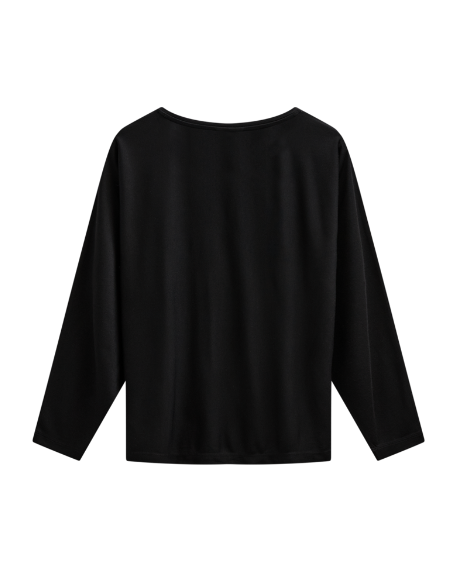 Prea er en enkel og anvendelig topp med rund hals og lange ermer – perfekt som base i garderoben. Den er laget i et lett og tynt materiale som føles mykt mot huden og gjør den behagelig å bruke hele dagen.