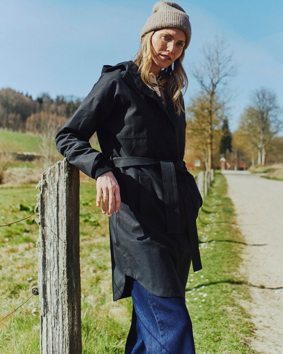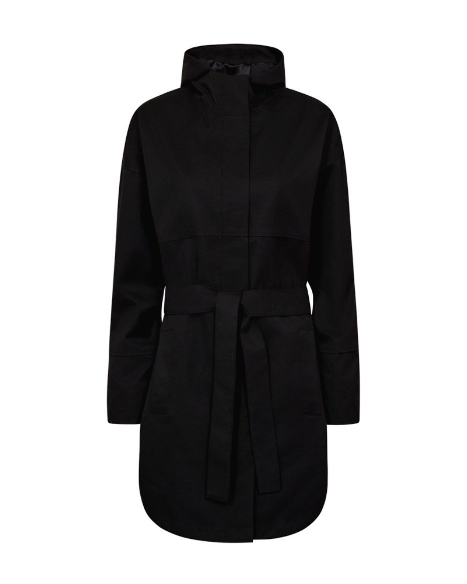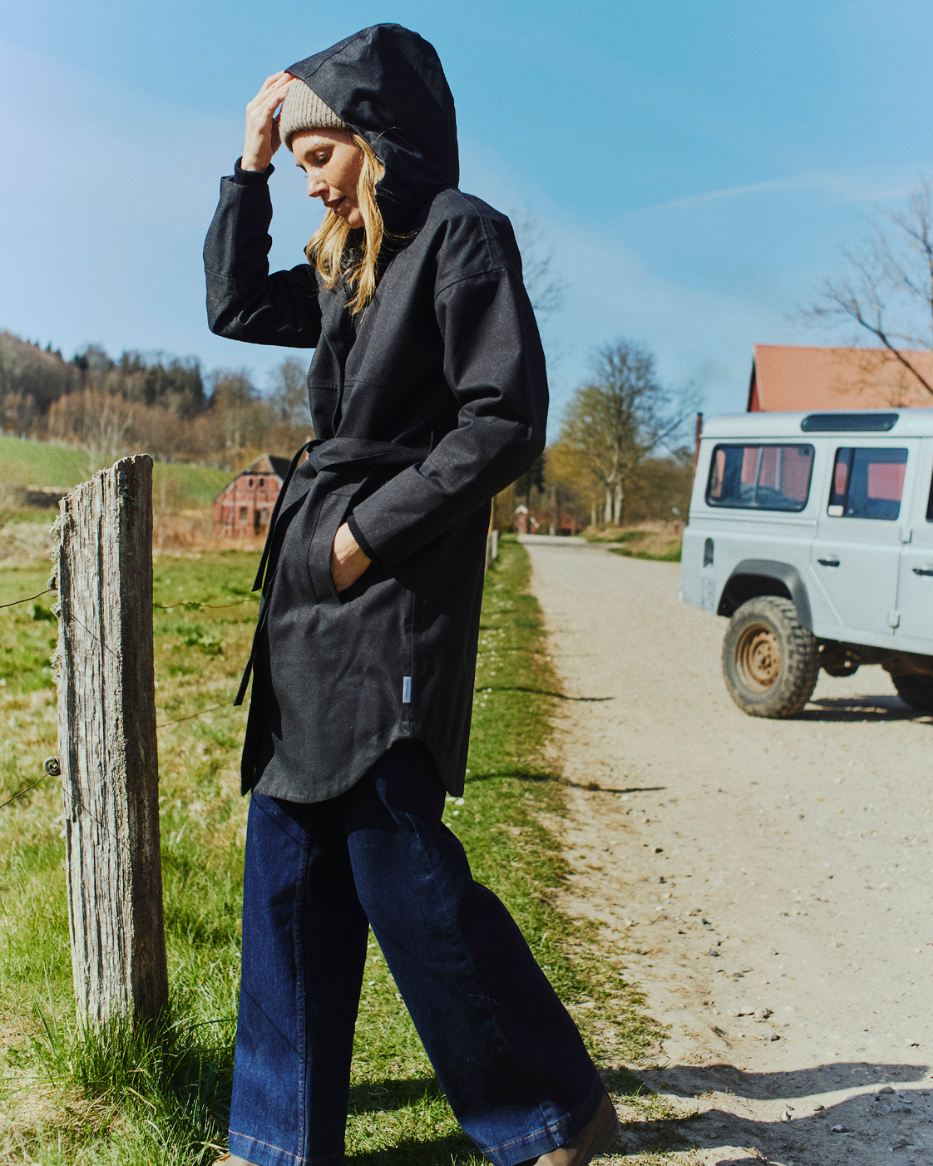 Designet i en rett modell med knytebelte, med fast hette, får jakken et moderne uttrykk og god bevegelighet.