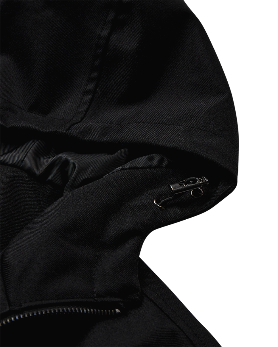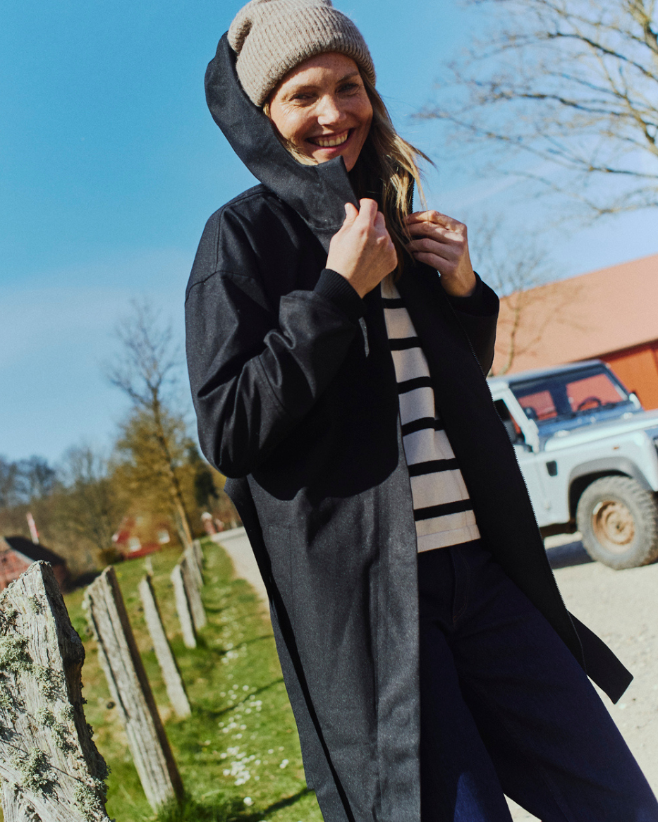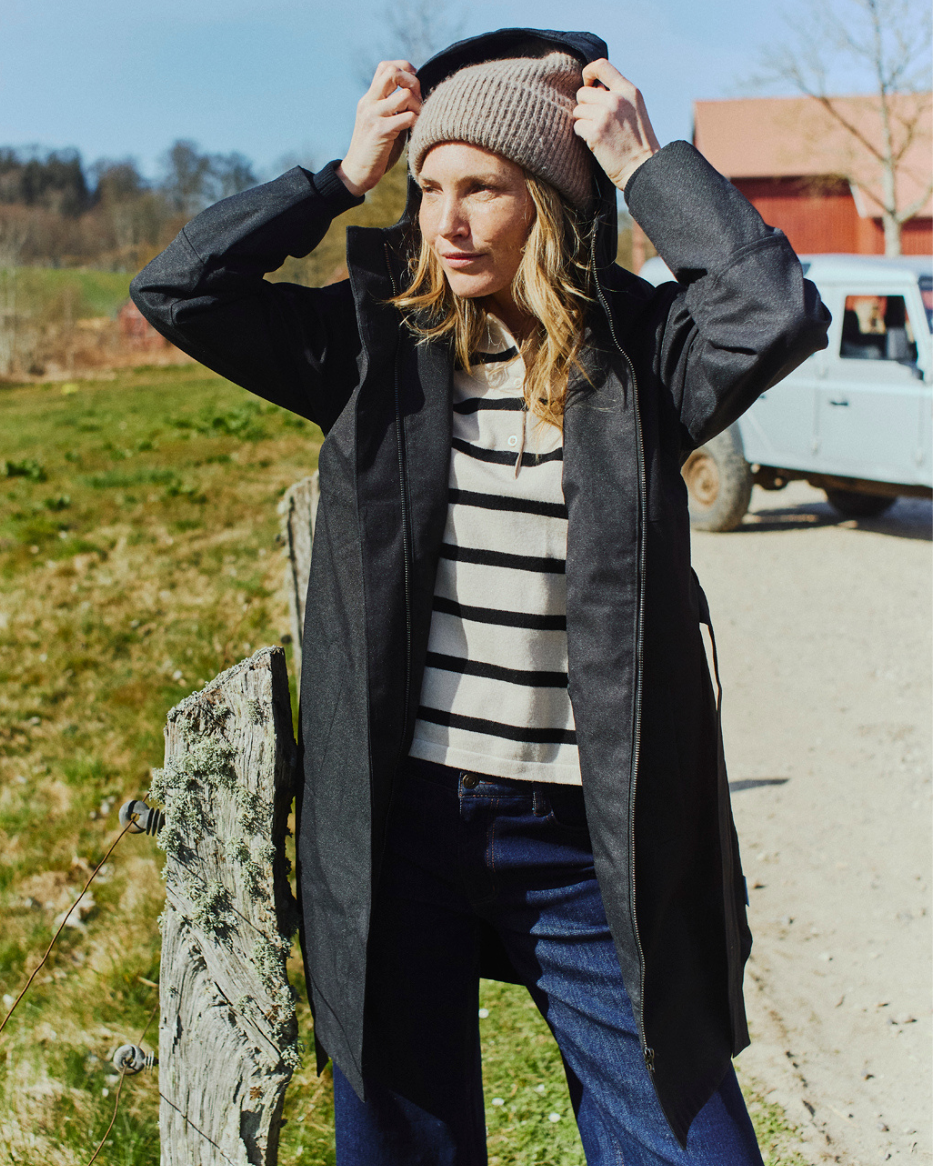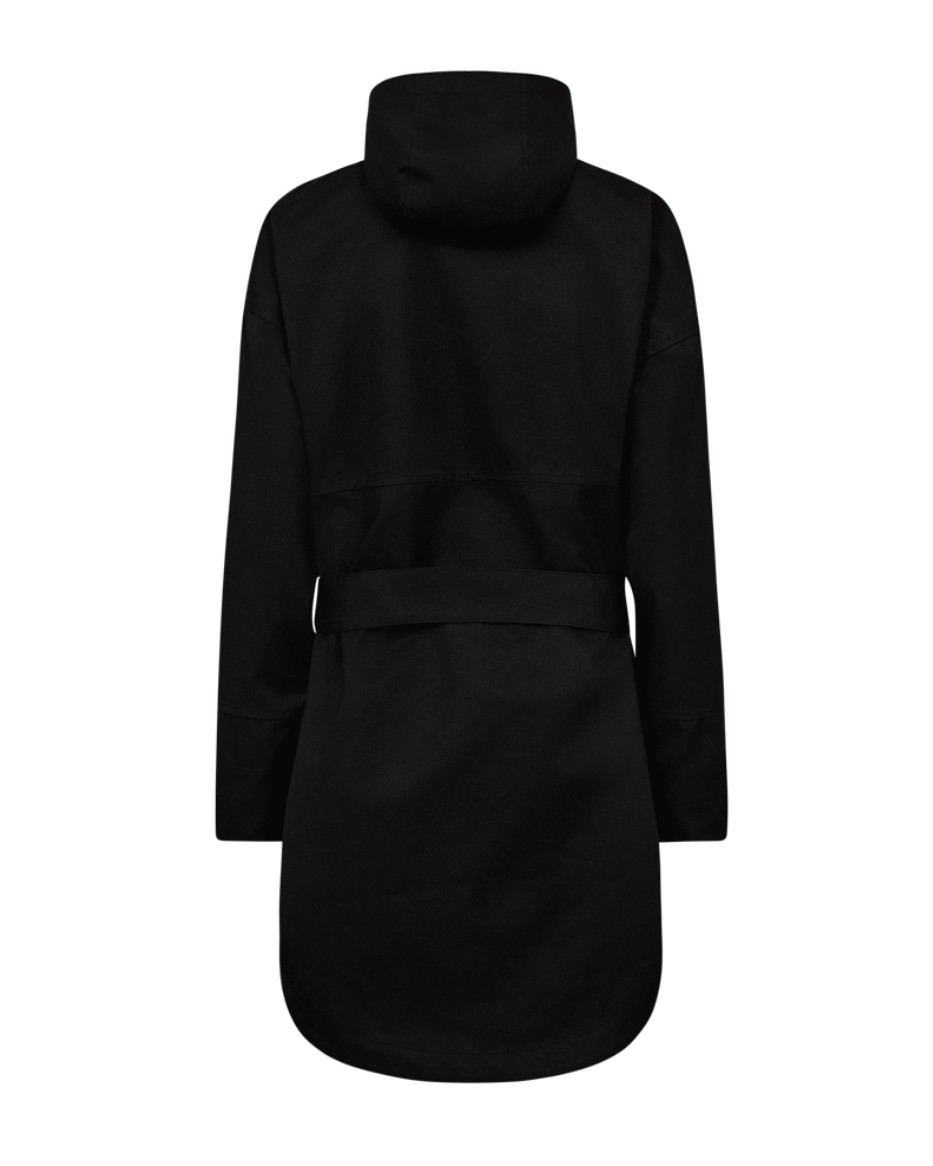 Designet i en rett modell med knytebelte, med fast hette, får jakken et moderne uttrykk og god bevegelighet.