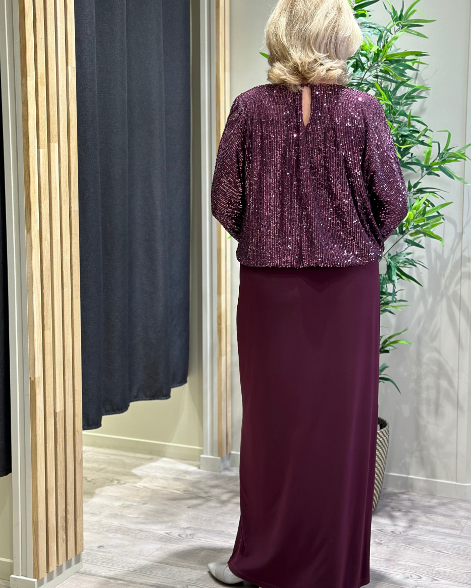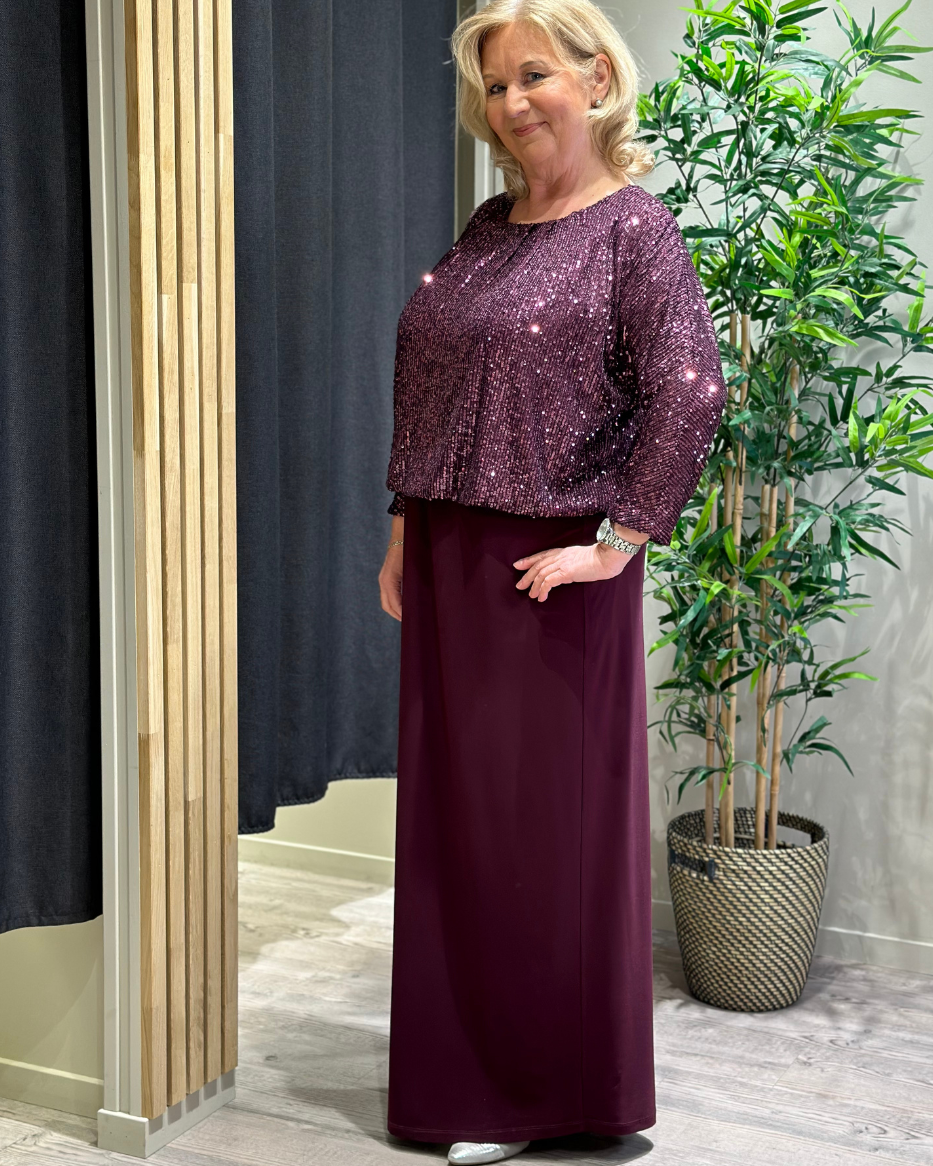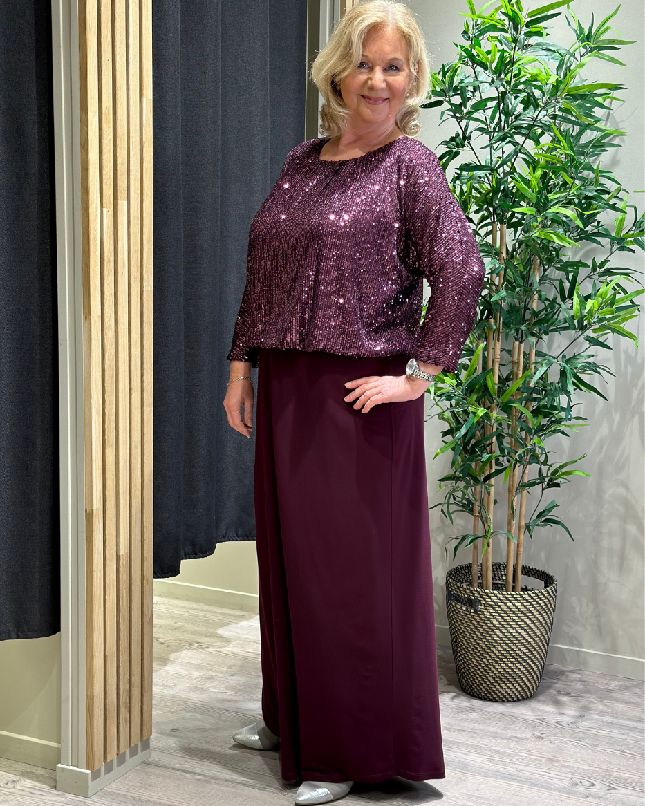 Glitrende glamour møter tidløs eleganse med vår lange kjole med paljettetopp! Dette drømmende antrekket kombinerer den sofistikerte silhuetten til en lang kjole med glitrende paljetter som fanger lyset på en uforglemmelig måte. Perfekt for enhver anledning som krever litt ekstra glans.