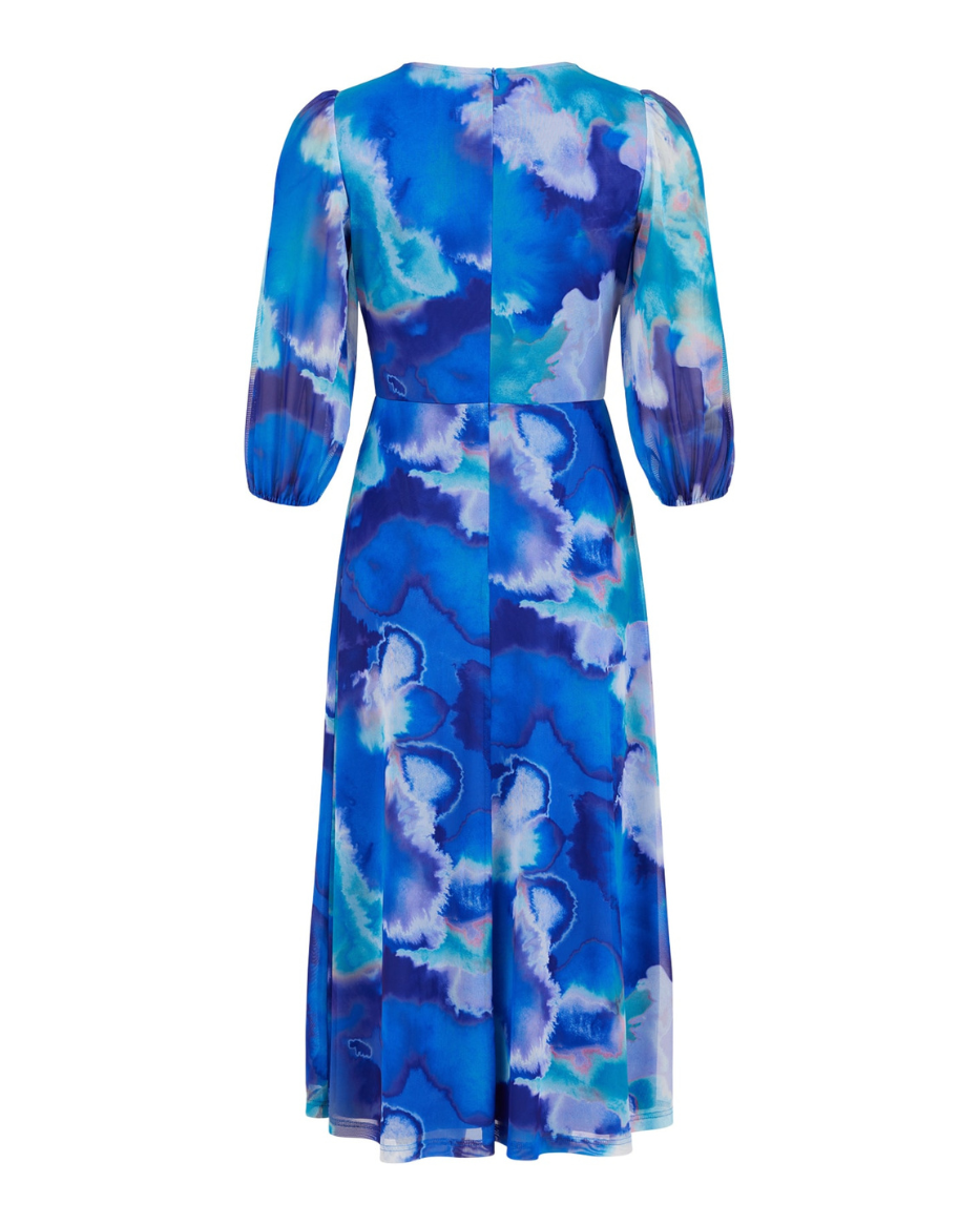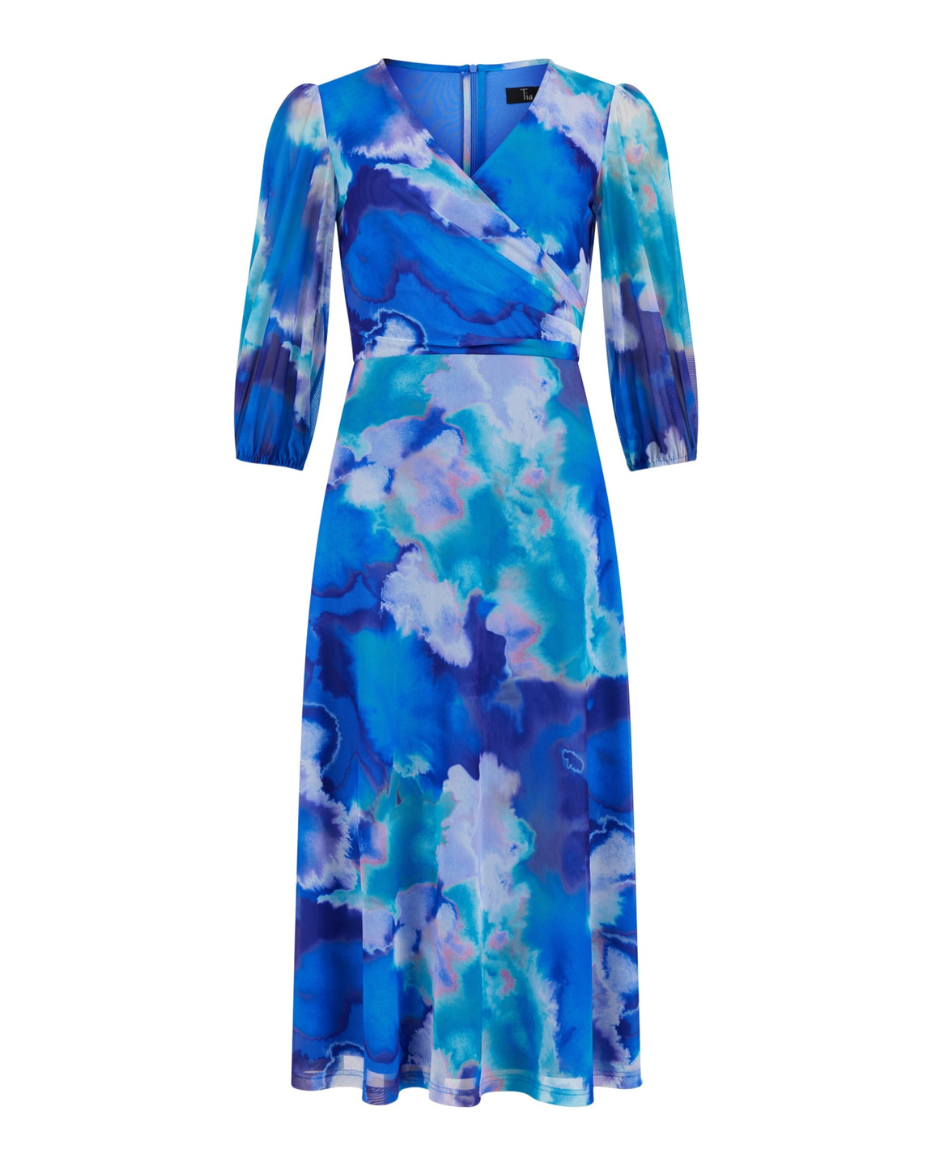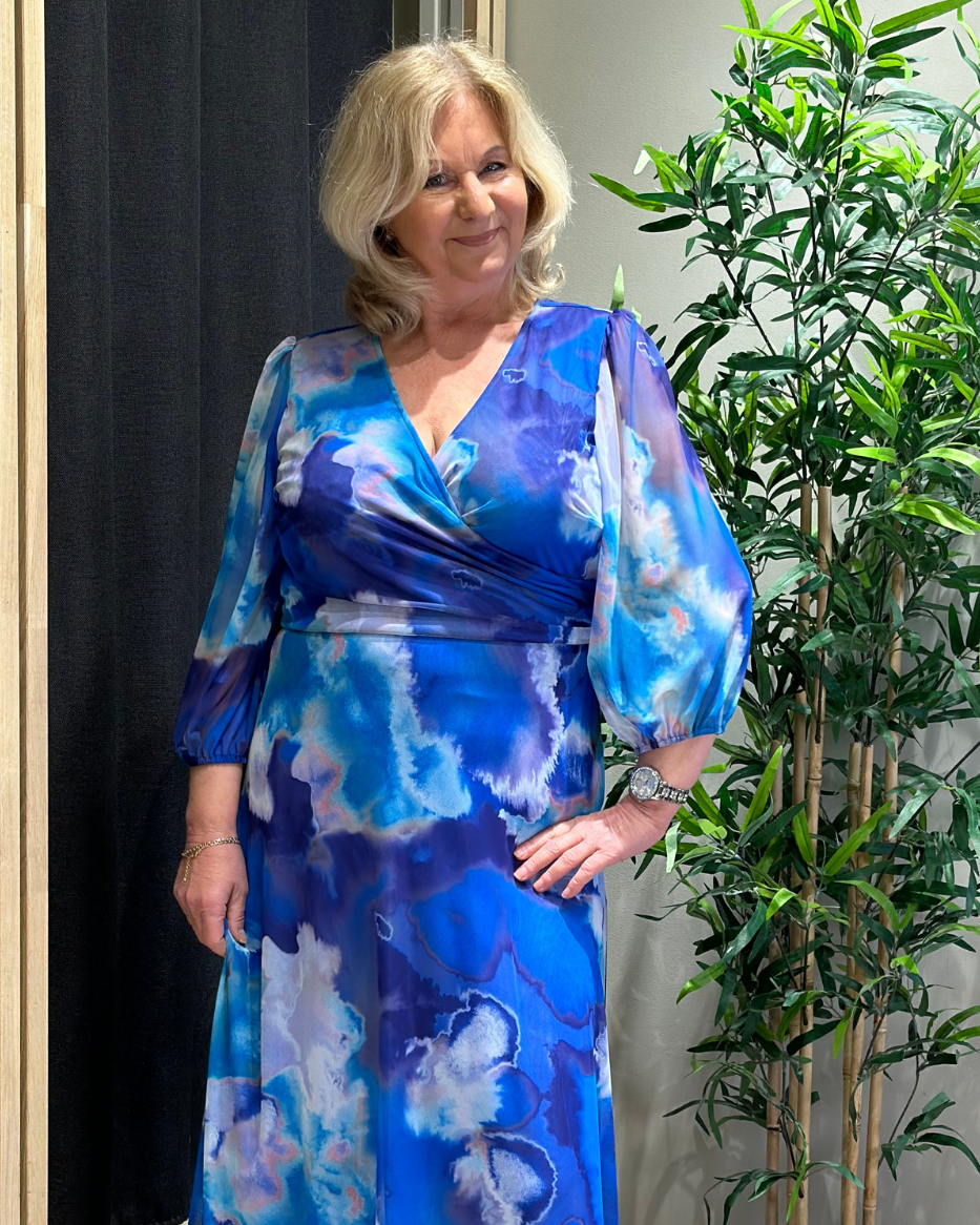 "Oppdag vår nydelige midi-kjole med et vakkert mønster og lange ermer i mesh kvalitet! Denne elegante kjolen er det perfekte valget for enhver anledning, fra kontoret til en kveld på byen. La deg forføre av det delikate mønsteret som legger til en ekstra touch av stil, mens de lange ermene gir deg komfort og varme i kjøligere vær. Fasongen har v-hals og lenge ermer