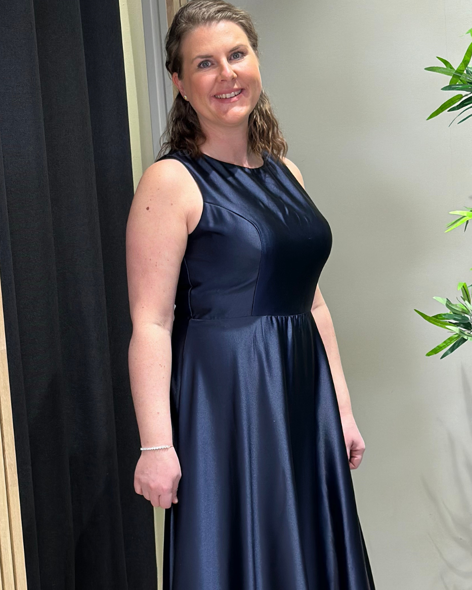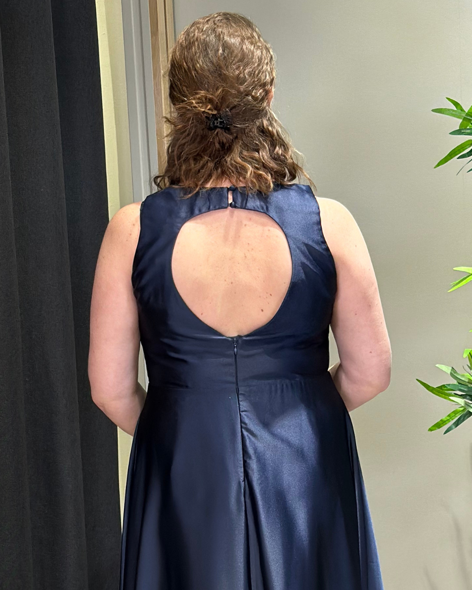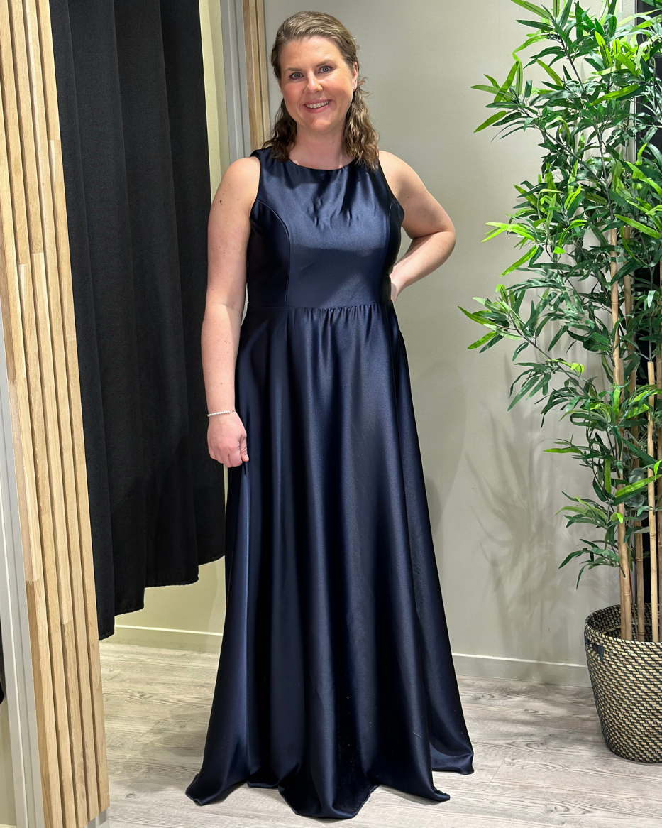 Denne kjolen kombinerer luksuriøs sateng med en dristig design som vil få deg til å skinne på ethvert selskap eller spesiell anledning. Den åpne ryggen legger til et element av sensualitet, mens den flatterende passformen og det elegante stoffet gir deg en sofistikert look. Kjolen har maxilengde og flatterende A-form. Den er i delikat sateng med en blank og glatt overflate. Delvis åpen rygg med 2 knapper i nakken. Den er paddet i overdelen, så du kan bruke den uten BH. Skjult glidelås bak.